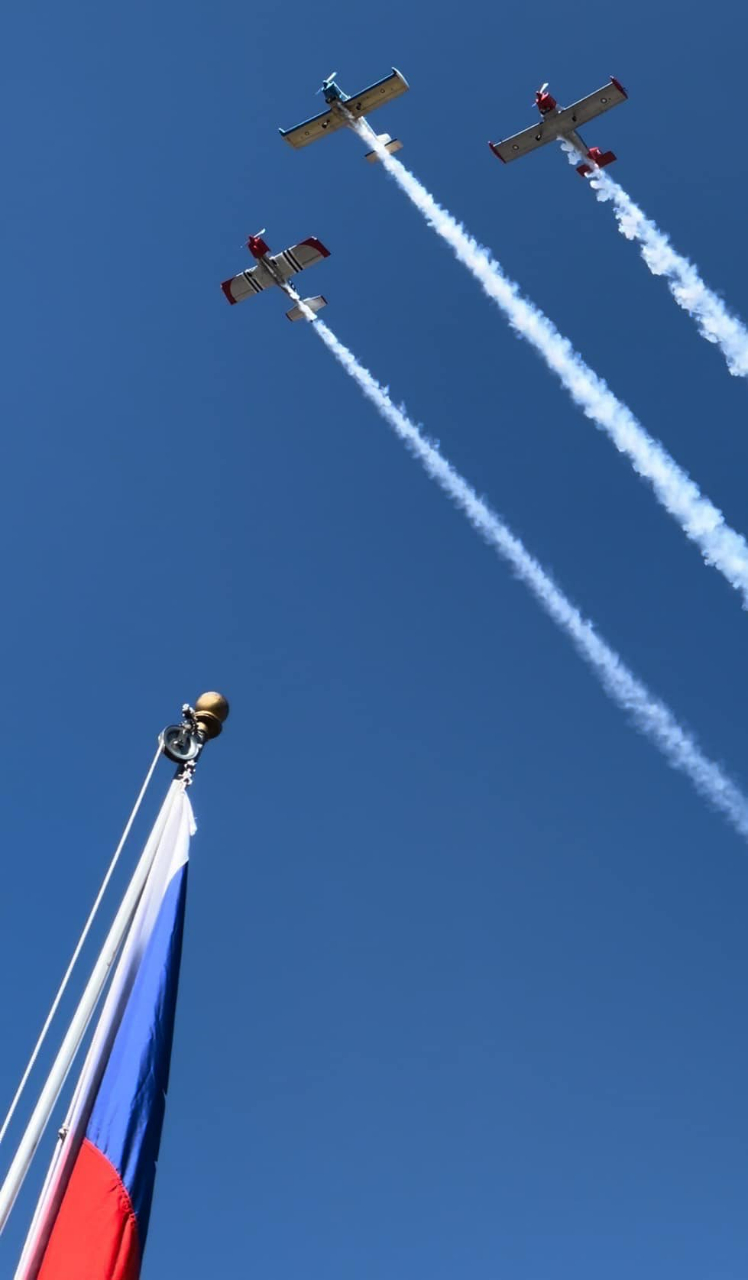 慶祝中華民國112年國慶蒙市升旗典禮 10點10分三架介壽號飛機劃過天際
