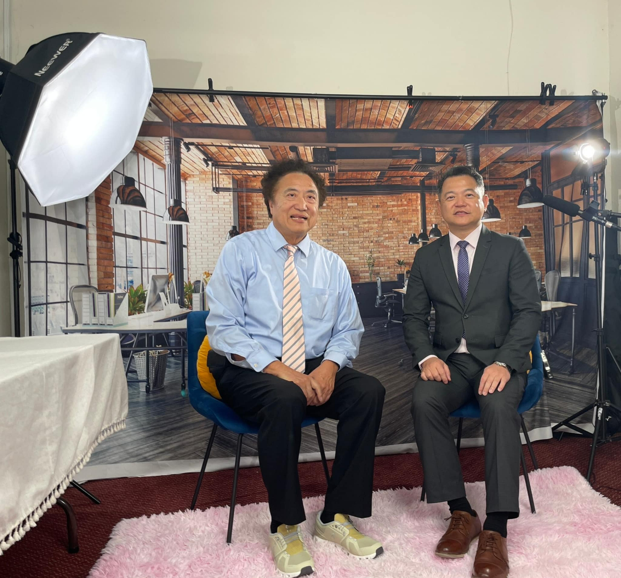 張國興總裁為紀欽耀處長導覽參觀公司內部專設的攝影棚