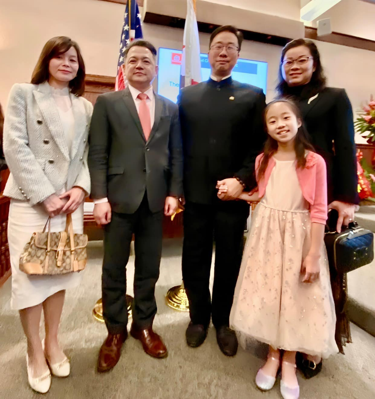 紀欽耀處長夫婦出席洛杉磯郡聖蓋博市新任市長吳程遠及副市長Denise Menchaca宣誓就職典禮