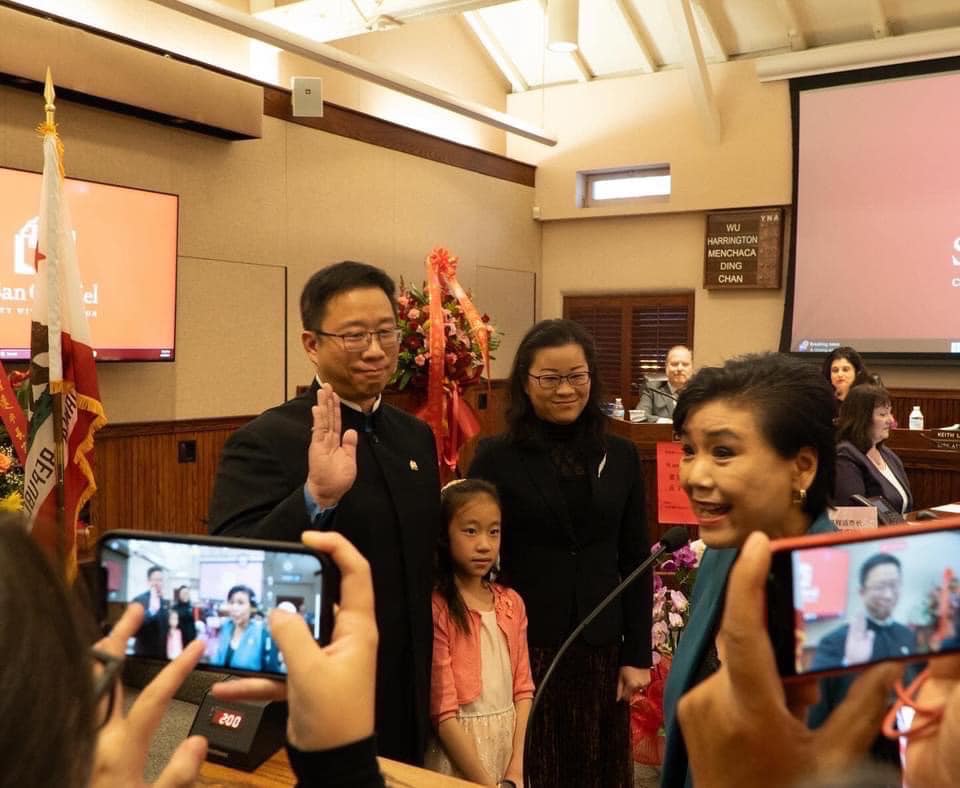 聖蓋博市吳程遠市長在聯邦眾議員趙美心(Judy Chu) 監誓下宣誓就職 (Photo Credit:City of San Gabriel Government )