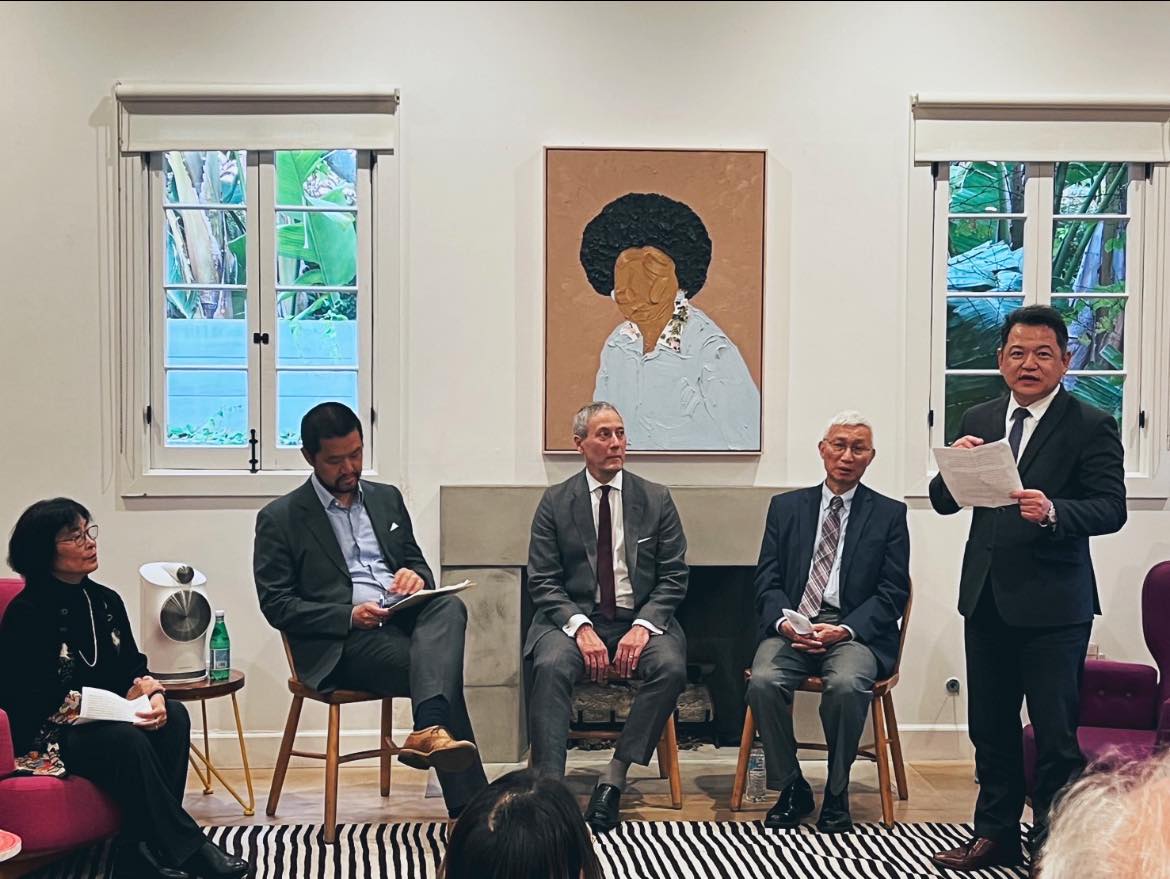 本(2024)年適逢《台灣關係法》(Taiwan Relations Act, TRA)立法45週年,為紀念此一重要歷史時刻,並前瞻台美中三邊關係的未來走向,駐洛杉磯台北經濟文化辦事處與加州大學洛杉磯分校(University of California, Los Angeles, UCLA)亞太中心(Asia Pacific Center, APC)及柏克國際關係中心(Burkle Center for International Relations, BCIR)合作,於本年6月5日晚間在鄰近洛杉磯郡立美術館(LACMA)的知名藝術展演空間—「Studio of Stefan Simchowitz and Rosi Riedl」舉辦「美台中三邊關係—台灣關係法45週年紀念論壇(Forum on US-Taiwan-China Trilateral Relations: Commemorating the 45th Anniversary of the Taiwan Relations Act)」,邀請國際知名兩岸議題專家裴敏欣(Min-xin Pei)教授及南加州大學(University of Southern California, USC)國際研究中心暨韓國研究所主任康燦雄(David Kang)對談,深入分析台美中關係的過去、現在與未來。