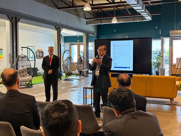 駐洛杉磯台北經濟文化辦事處經濟組劉倫正組長說明雙邊經貿交流現況(一旁為新墨西哥州經濟發展廳廳長Mark Roper)
