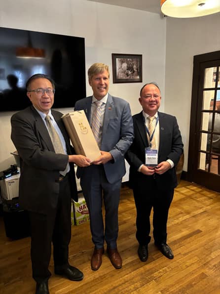 我方感謝Tim Keller市長設宴款待回禮(左1為駐洛杉磯台北經濟文化辦事處經濟組劉倫正組長、右1為外貿協會市場拓展處王信雄副處長)