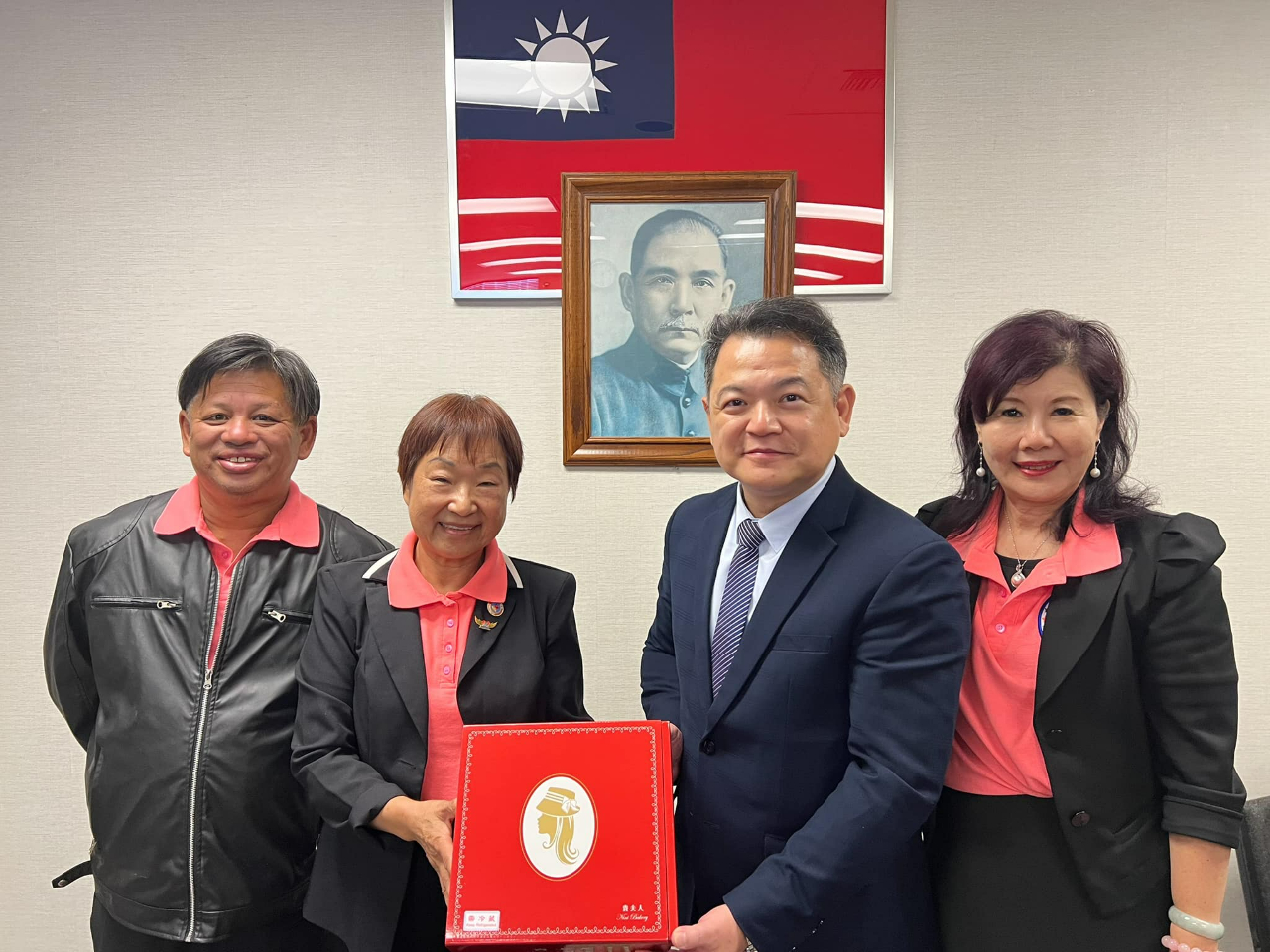 大合照第一排從左到右為加台聯孫華翊顧問、王竹青顧問、劉煥君副會長、紀處長、儲錦琪會長、張耀燦副會長、謝傳佐顧問、楊家淦顧問。第二排由左至右許宗由理事 、何沛嫄秘書、王禎惠財務長、王冠惠組長、Cindy Wu理事。