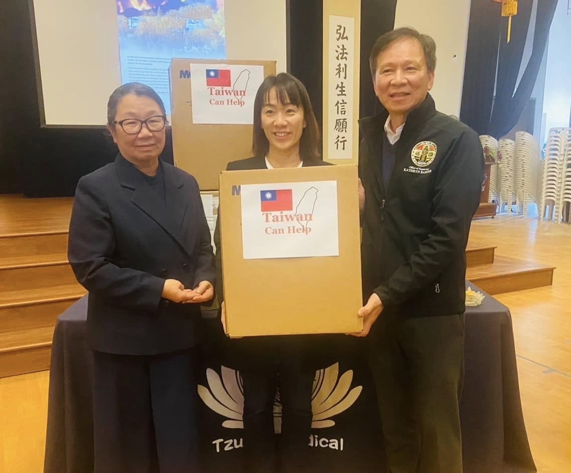 為協助大洛杉磯山火受災居民,並響應洛杉磯郡救災人員對口罩的物資需求,本處特別捐贈1萬個N95口罩及3箱護目鏡,連結慈濟的救助網絡 ,表達對洛杉磯郡的關懷與支持。