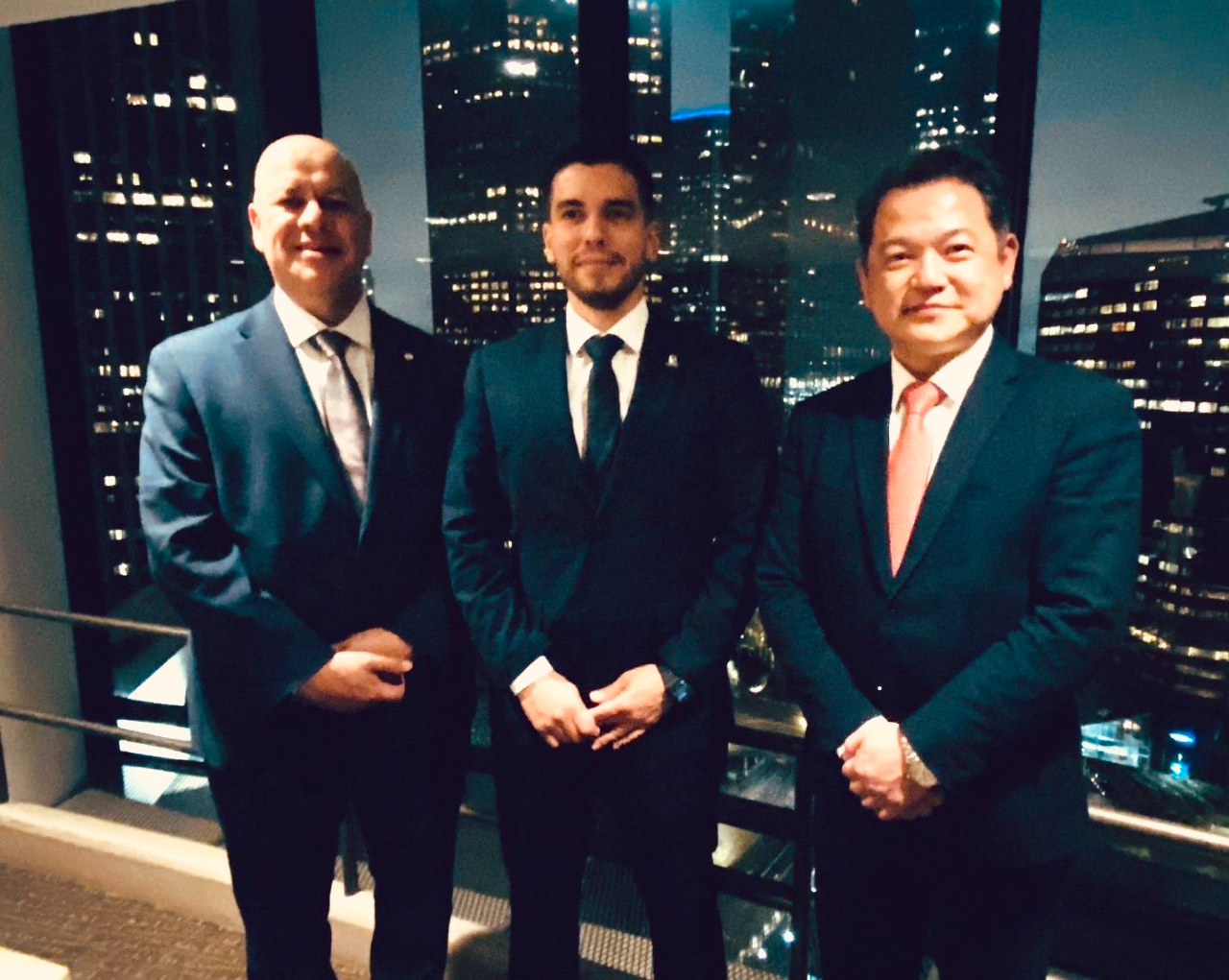 圖說1:紀欽耀處長與巴拉圭工商部投資暨出口推廣次長Javier Viceros(中)及巴拉圭駐洛杉磯總領事Manuel Ruiz Diaz(左)合影。