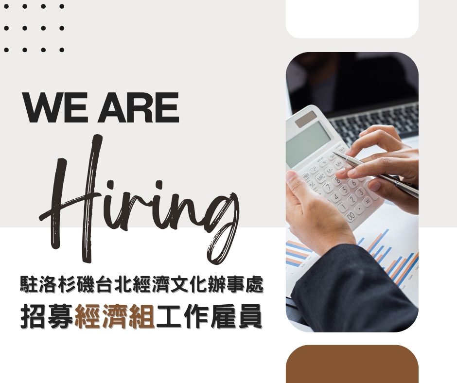 駐洛杉磯台北經濟文化辦事處招募「經濟組」工作雇員