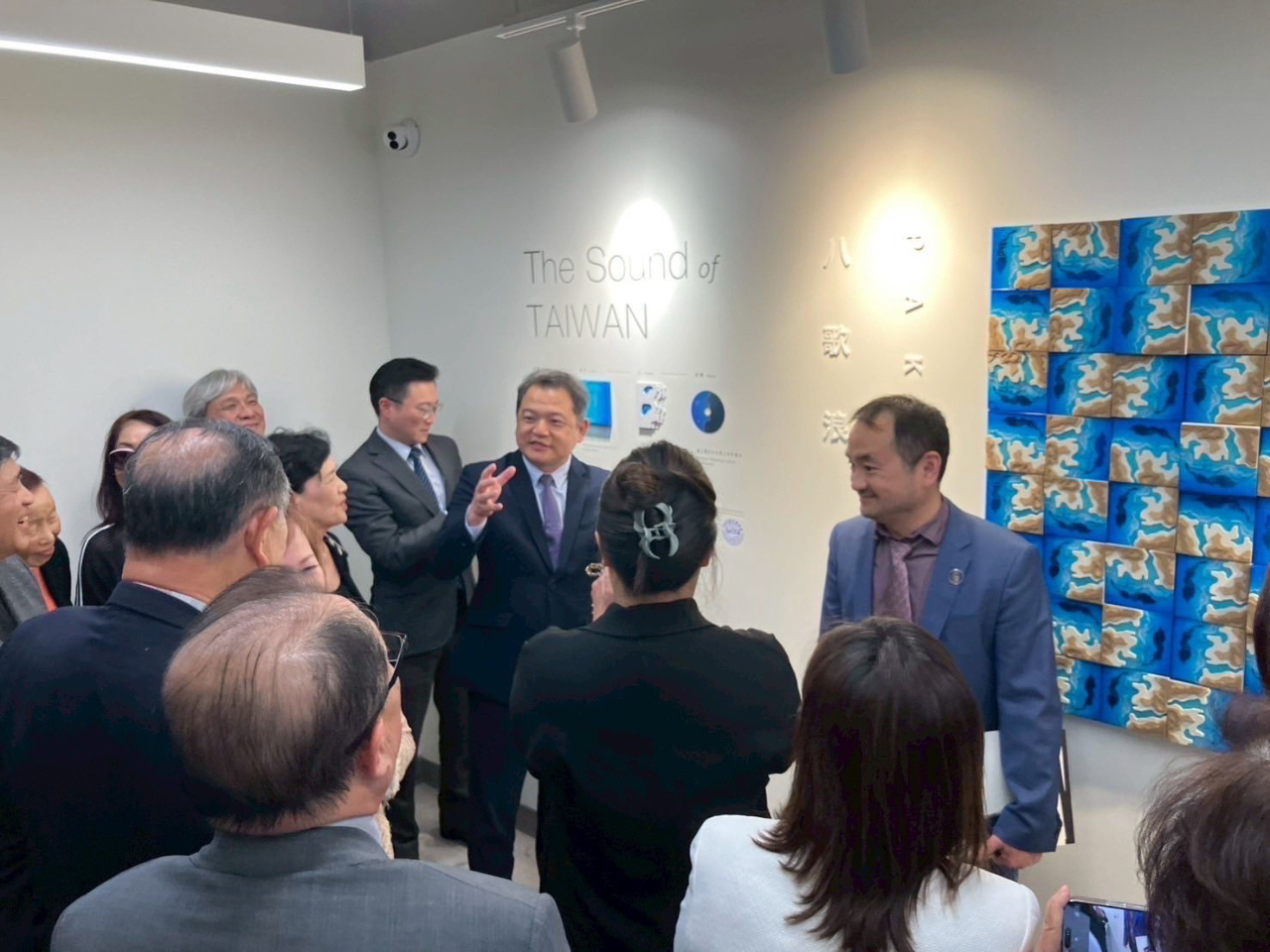 圖說2:紀欽耀處長與臺灣書院簡德源主任向台美商會介紹本處公共空間藝文展示作品。