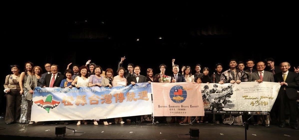 紀欽耀處長夫婦很高興在5月13日晚間出席在拉古納伍茲表演藝術中心舉辦的「2025橙縣台灣傳統週慶祝大會」,與橙縣觀眾一同欣賞僑務委員會文化訪問團十鼓擊樂團首場在南加州演出的「臺灣躍動」。