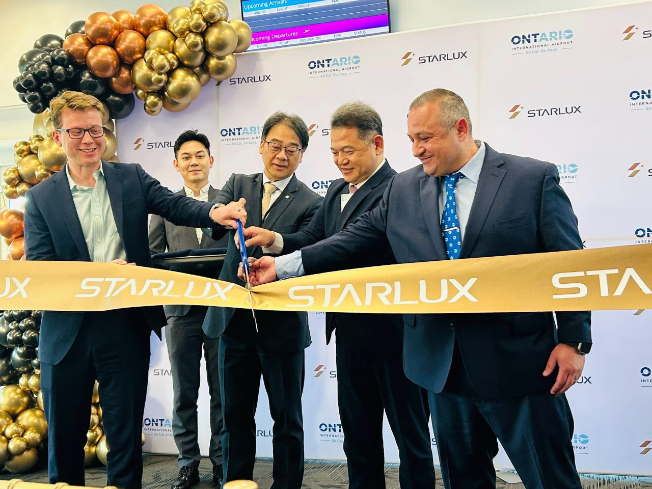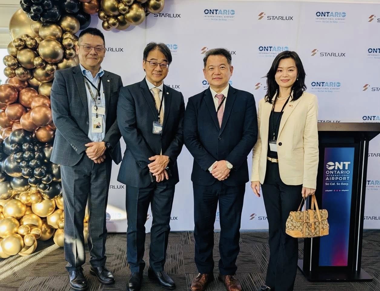 紀欽耀處長夫婦偕觀光組林宜錚組長等同仁於6月2日出席星宇航空在加州安大略機場(ONT)第4航廈舉行的「安大略-台北」首航典禮,見證該公司正式開通北美第四個航點!