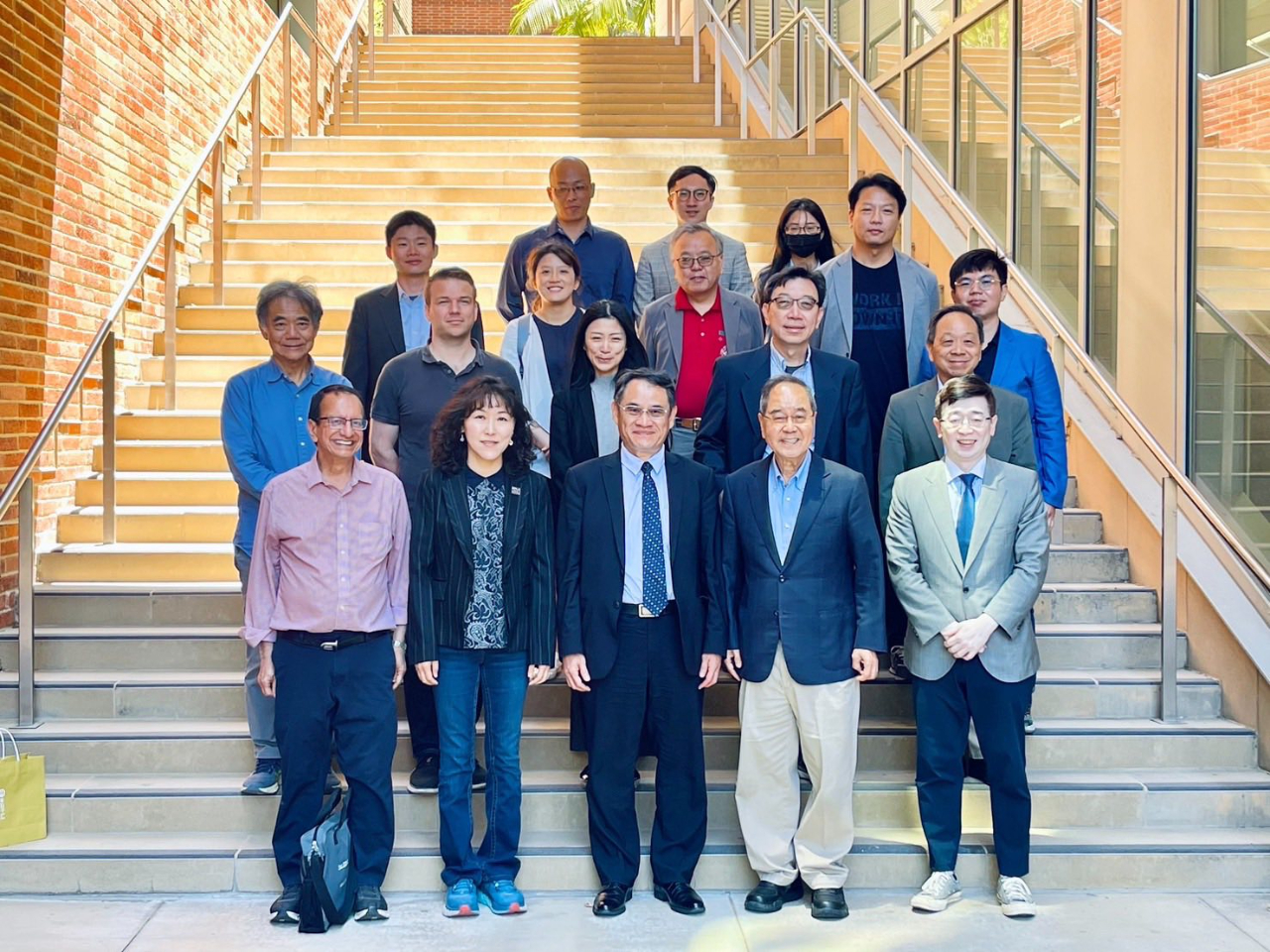 圖說3:訪團至UCLA工程與應用科學學院參訪交流,院長Alissa Park(前排左2)親自接待,並與美國國家工程學院院士Chandrashekhar Joshi(前排左1)、中研院王康隆院士(前排右2)、楊陽院士(第二排左1)等人於校園合影。