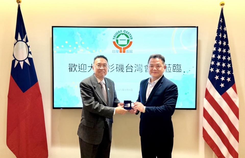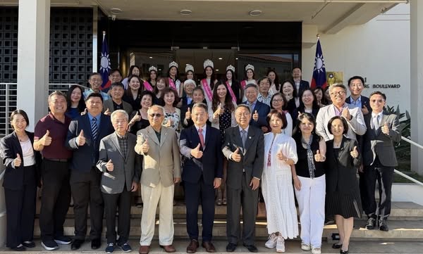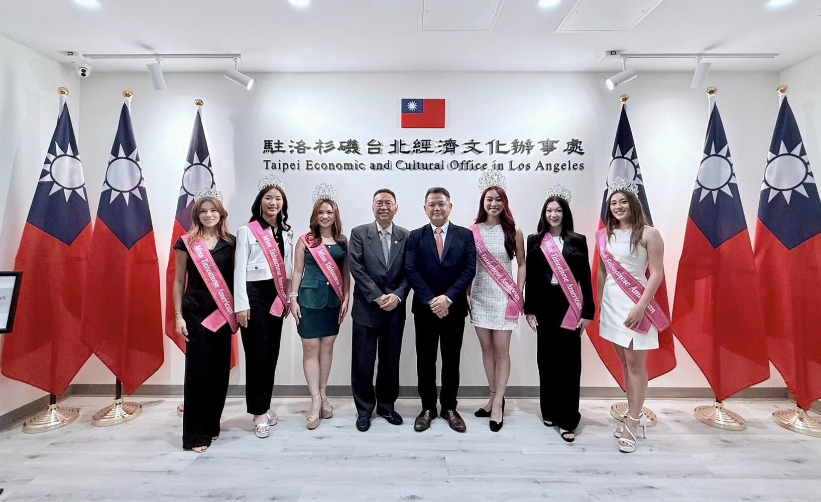 紀欽耀處長偕同仁於8月8日在本處接待大洛杉磯台灣會館田詒鴻董事長、會館董事及2025年台美小姐一行35人,除了帶領來賓參觀領務大廳及藝術展品,並就海外出生子女申請我國護照及返台設籍等議題進行交流與討論。