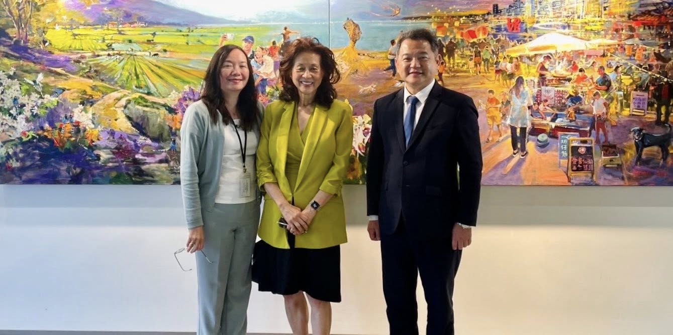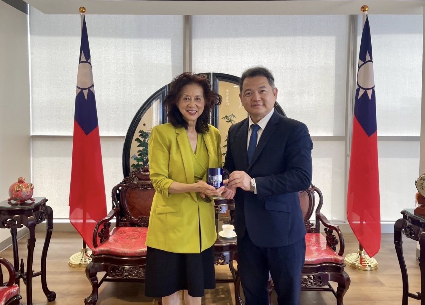 紀欽耀處長偕同仁於8月19日在本處接待幫幫忙基金會(SimplyHelp Foundation) 創始人暨現任會長鮑潘曉黛,雙方就跨國人道慈善服務、國際NGO培力、青年返台交流規劃,以及近期慈善捐贈物資成果等議題進行深入交流。