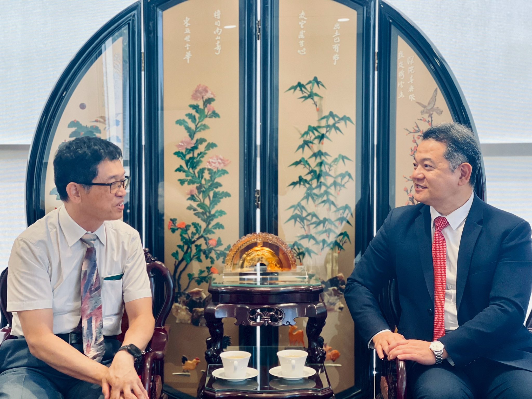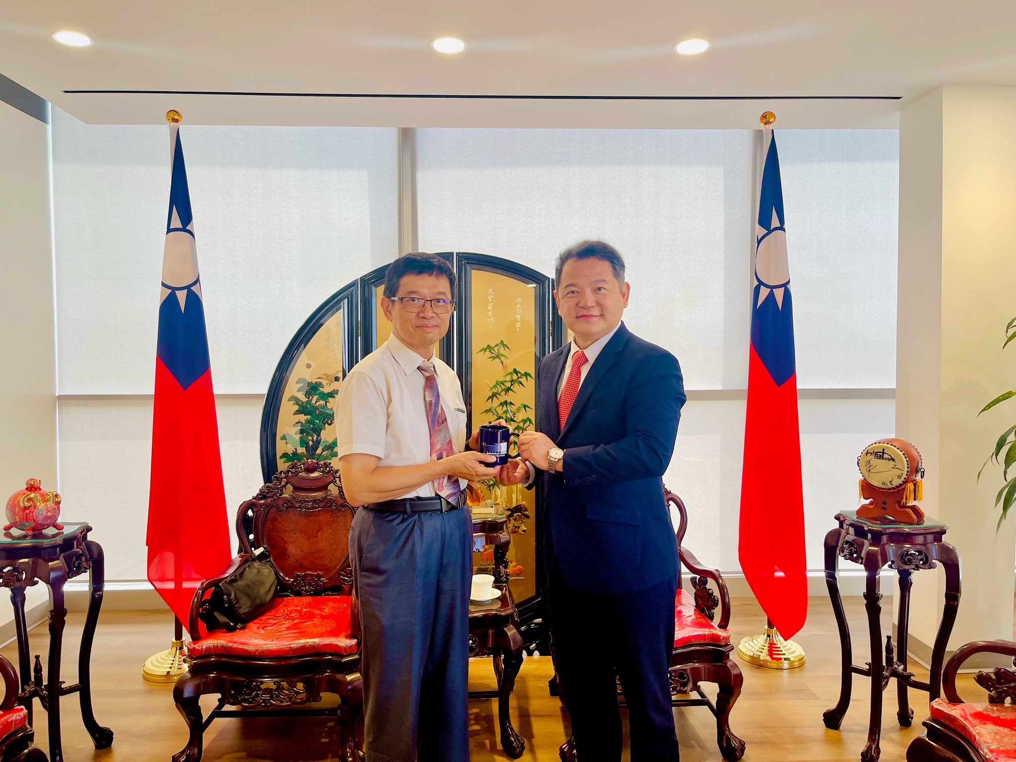 紀欽耀處長偕科技組同仁於8月26日在本處接待前科技部政務次長(現為國家科學及技術委員會)、成功大學牙醫學系暨口腔醫學研究所謝達斌教授。