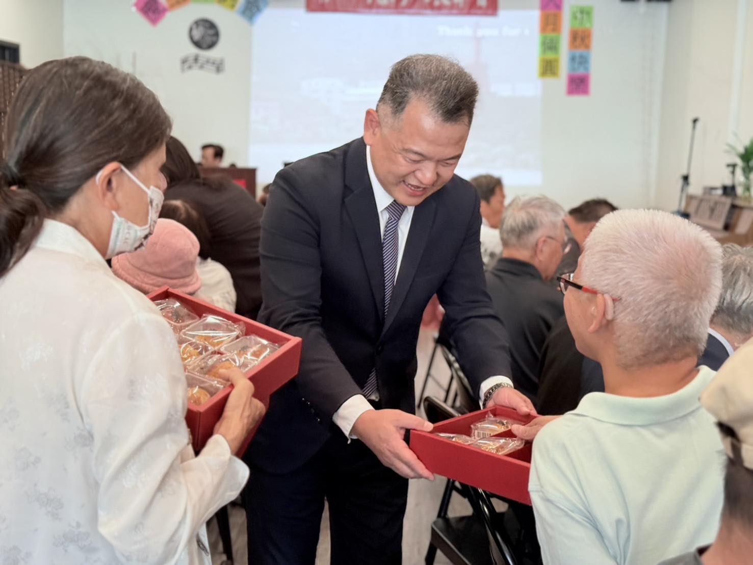 紀處長分送月餅給長輩們,分享節慶的溫暖與喜悅。