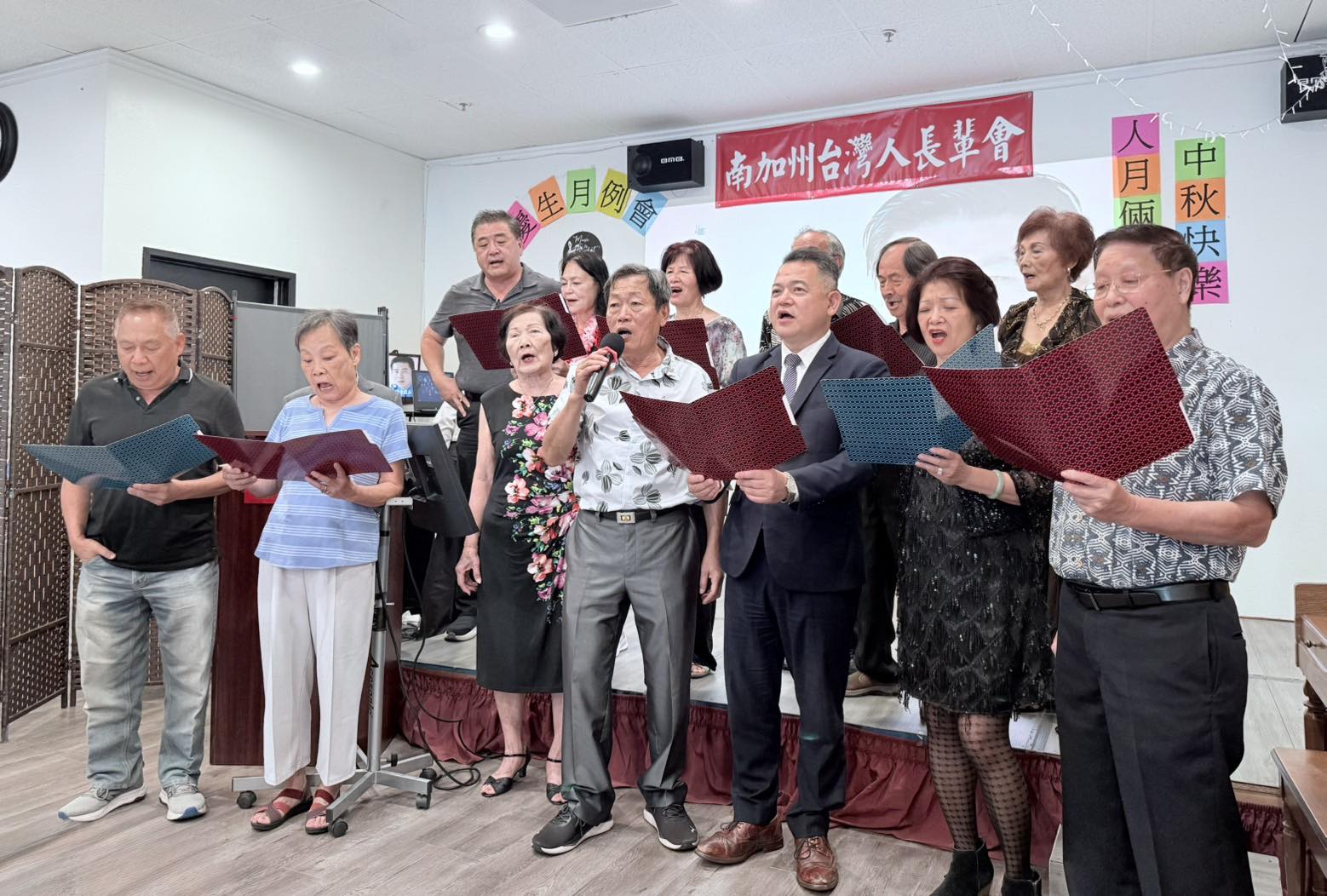 紀處長致詞時表示,非常高興能參加這樣的聚會,看到長輩們齊聚一堂,健健康康、快快樂樂地唱歌交流,不僅讓人感受到濃厚的節慶氣氛,也讓他想起遠在台灣的長輩們。紀處長隨後也與大家歡唱多首與月亮相關的歌曲,透過彼此的陪伴與歌聲,共度溫馨美好的時光。