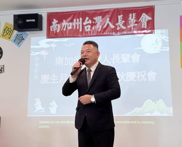 紀欽耀處長於9月18日出席南加州台灣人長輩會慶生月例會。今年適逢閏六月,中秋節來得較晚,大家也藉此月例會提前歡聚慶祝。紀處長特別準備月餅與長輩們分享,祝福長輩們中秋節快樂,月圓人團圓。