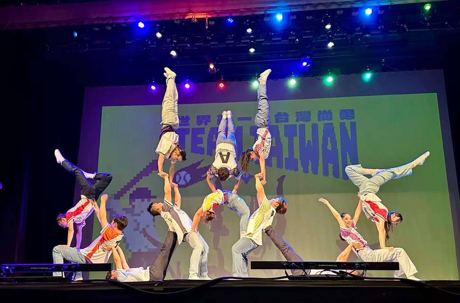 此次表演「臺灣·未來藝境」融合傳統與現代,透過雜技表演展現城市意象之美,象徵福爾摩沙對未來的創新願景與文化自信,贏得滿堂喝采!節目尾聲全場觀眾更在「臺灣尚勇」合唱聲中,一起推動巨型充氣棒球,氣氛嗨到最高點!