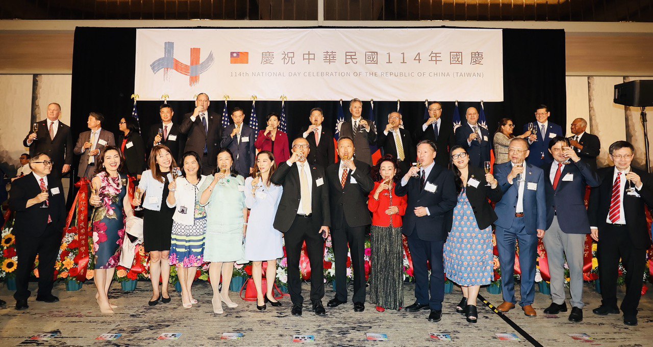 紀欽耀處長與出席114年國慶酒會貴賓舉杯祝賀中華民國生日快樂。