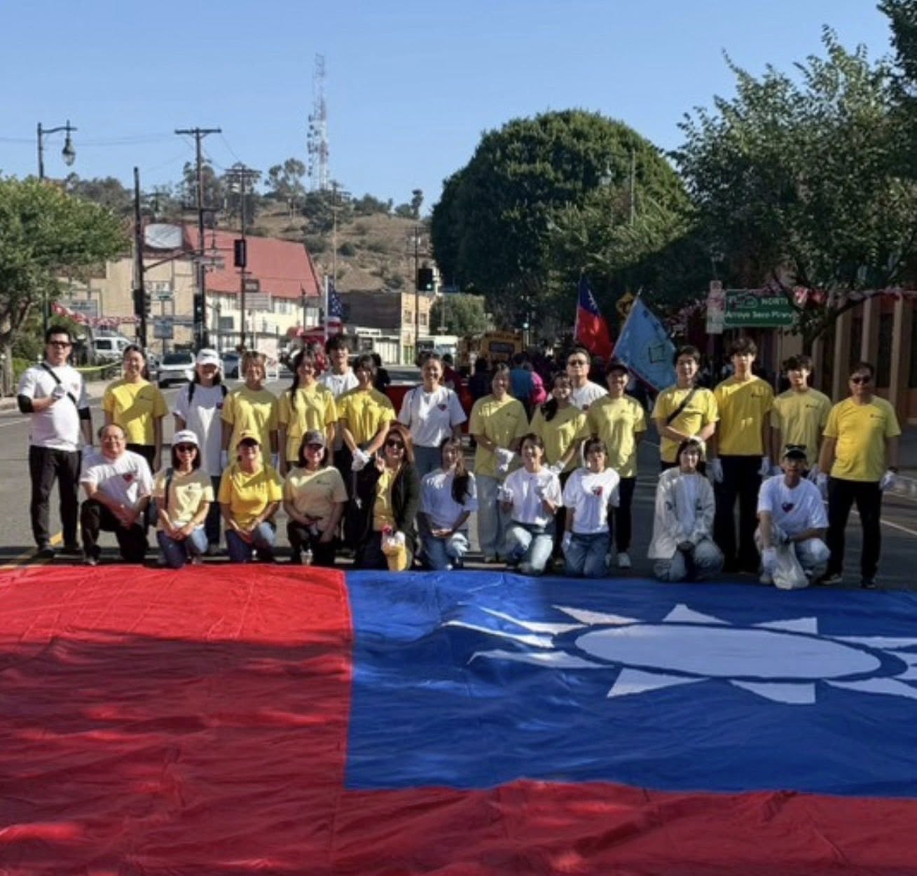 圖說7:海外青年文化大使洛杉磯分會護送巨幅國旗進場前合影。