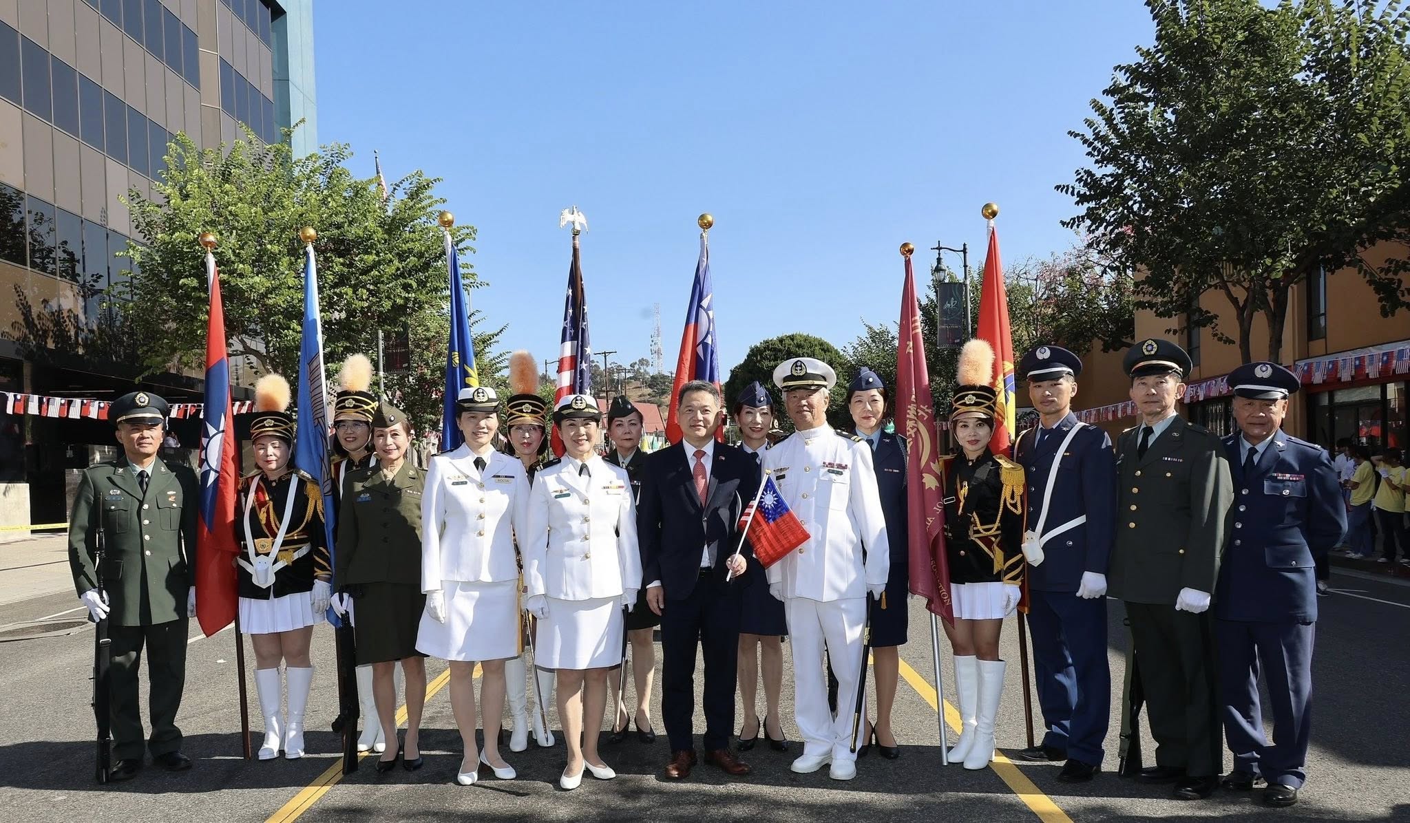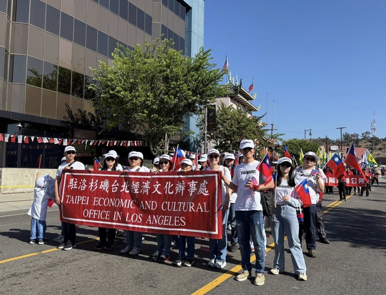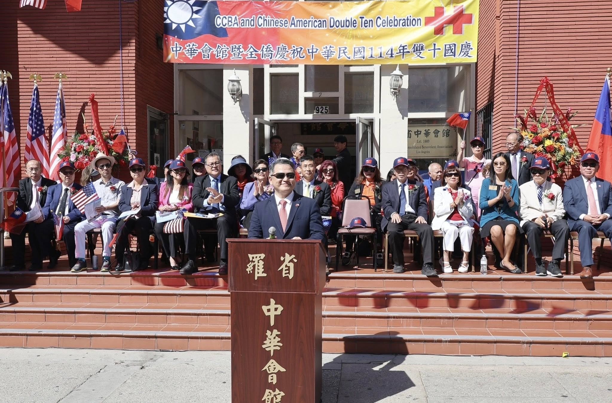 紀欽耀處長偕本處同仁員眷於10月5日出席羅省中華會館在華埠百老匯大街舉辦全僑各界慶祝中華民國114年雙十國慶遊行、升旗典禮暨向國父孫中山先生銅像獻花致敬,晚間並於金龍餐廳舉辦慶祝雙十國慶餐會,美國聯邦眾議員趙美心(Judy Chu)、加州州眾議員方樹強(Mike Fong)、洛杉磯郡估值官Jeff Prang、洛杉磯地區多位民選官員等政要,以及僑界領袖與嘉賓逾350人共襄盛舉。