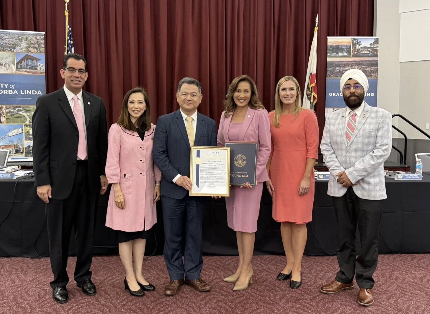 紀欽耀處長於10月21日應邀出席加州約巴琳達市(City of Yorba Linda) 市議會頒贈友台宣言儀式,該宣言旨在宣布2025年10月10日為「中華民國(台灣)國慶日」,表彰台灣在民主制度、科技創新、經濟發展與文化傳承的傑出成就,並重申對台灣堅持民主價值與人權保障的高度肯定。