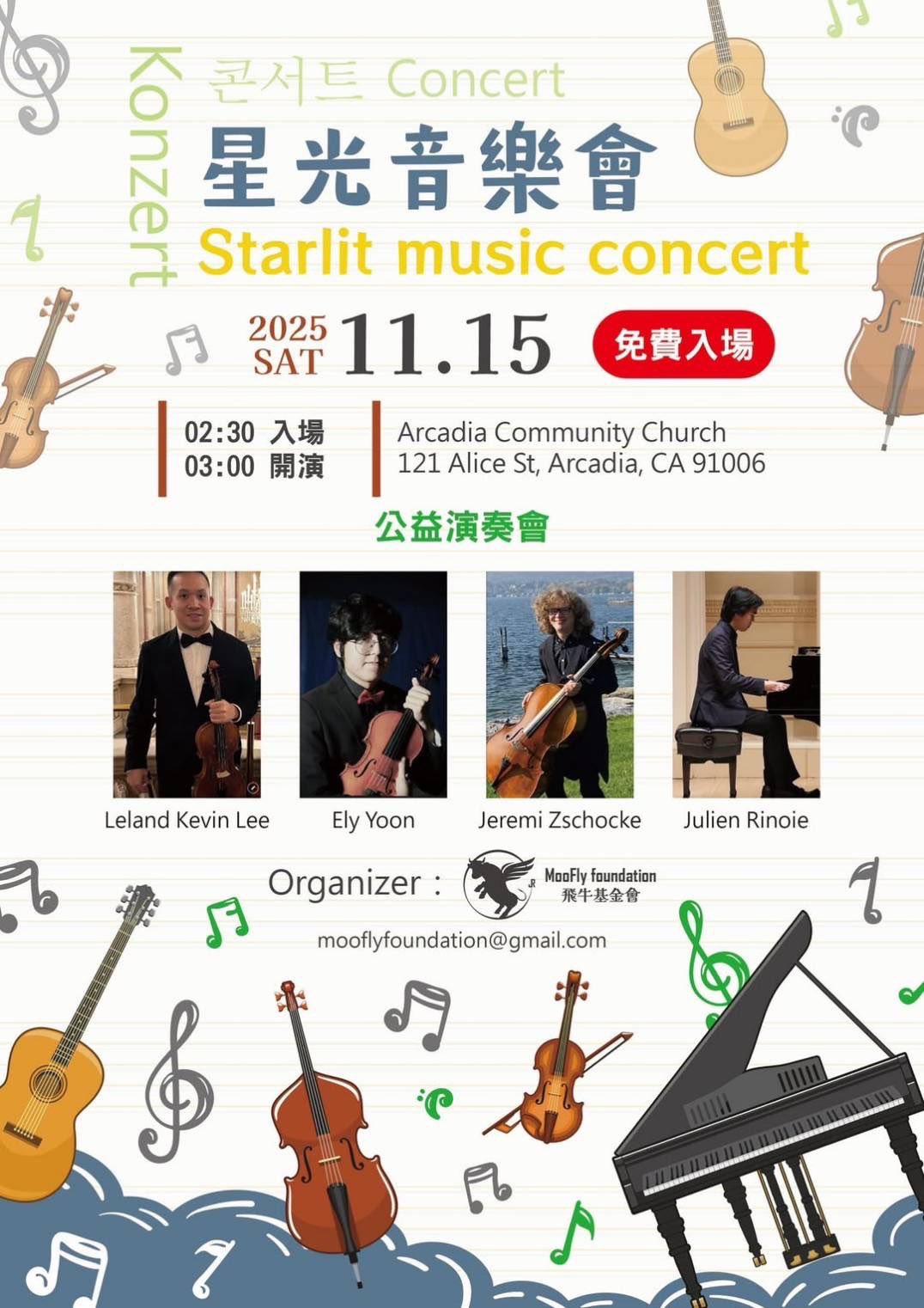 除了視覺藝術,李柏毅也在音樂領域具有傑出天份。此次他受飛牛基金會邀請,即將在11月15日下午3時於Arcadia Community Church的「星光音樂會」演出小提琴,與來自瑞士、美國的傑出青年音樂家共同演奏,歡迎各界前往支持,感受他們在音樂中綻放的耀眼光芒!