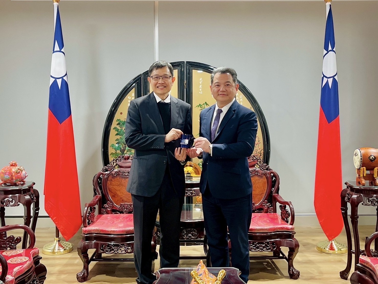 紀欽耀處長於1月8日在本處接待國家科學及技術委員會產學及園區業務處林德生處長及工業技術研究院產服中心陳立偉執行長一行,並邀請洛杉磯台美商會及洛杉磯台美商會青商部、北美工程師協會南加分會、ONYX醫揚科技等當地產業代表及僑界領袖共同交流會晤。