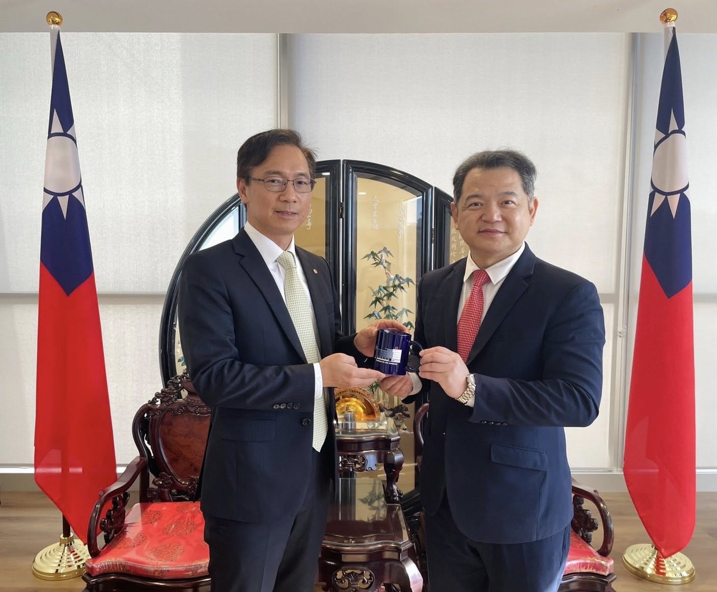 圖說2:紀欽耀處長與長榮航空蘇偉仁副總互贈紀念禮品。
