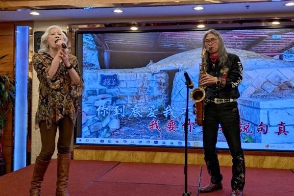 圖說5:鄉親劉邦蓉(右)演奏薩克斯風、太太葉美麗(左)獻歌,獲得滿堂彩。