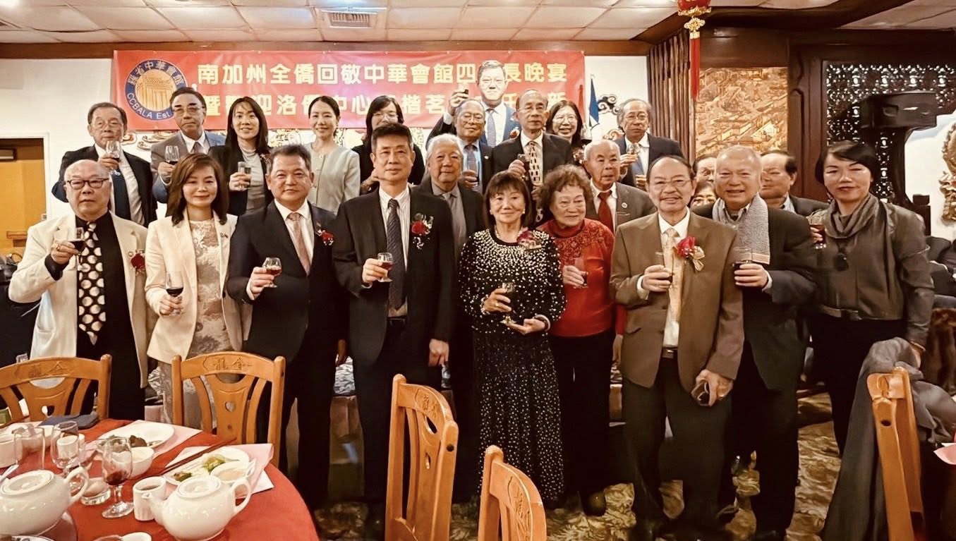 紀欽耀處長夫婦於1月11日出席「南加州全僑回敬中華會館四首長晚宴」,與聶澤英主席、朱栢田副主席、張麗卿監事長、梁國輝副監事長四位首長及僑領們共敘情誼。