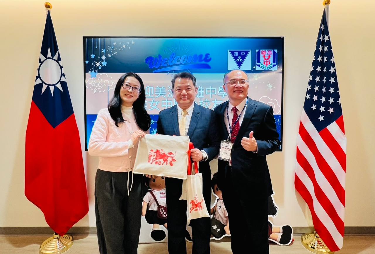 圖說3:紀處長與高雄女中校長鄭文儀(右)及美洲雄友會許書怡會長(左)互贈紀念品。