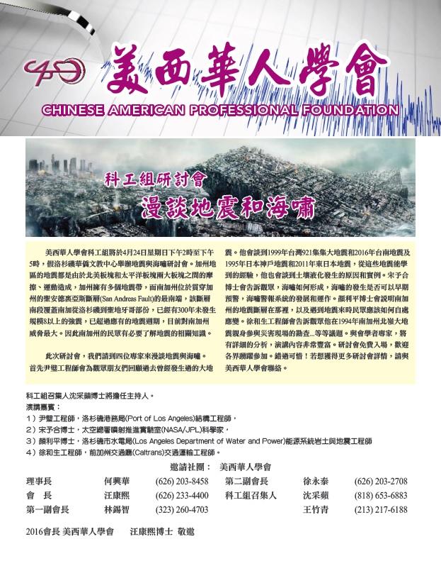 美西華人學會科工組 -- 4月24日 地震與海嘯研討會