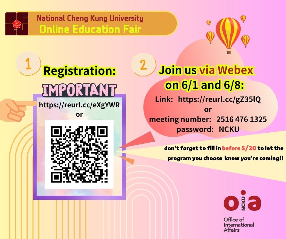 The university invites students from around the world to join this event to discover the beauty of Taiwan's unique culture and language while pursuing academic excellence at NCKU. To register for the online education fair, please scan the QR Code on the poster or follow the link https://reurl.cc/eXgYWR before May 20th, 2023. NCKU is committed to providing the highest quality education and opportunities for all its students, and welcomes international students to join its community.