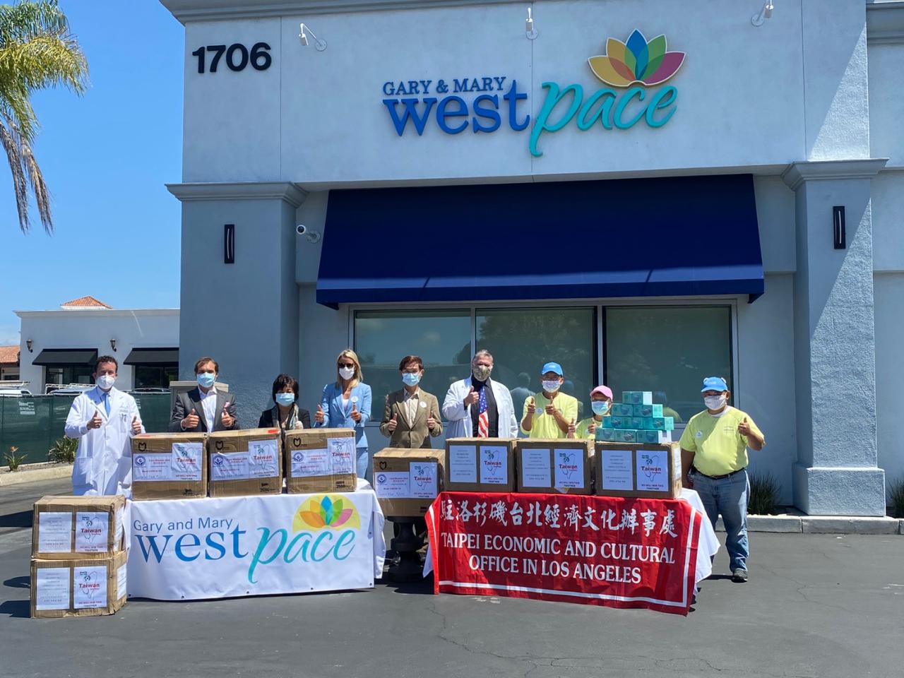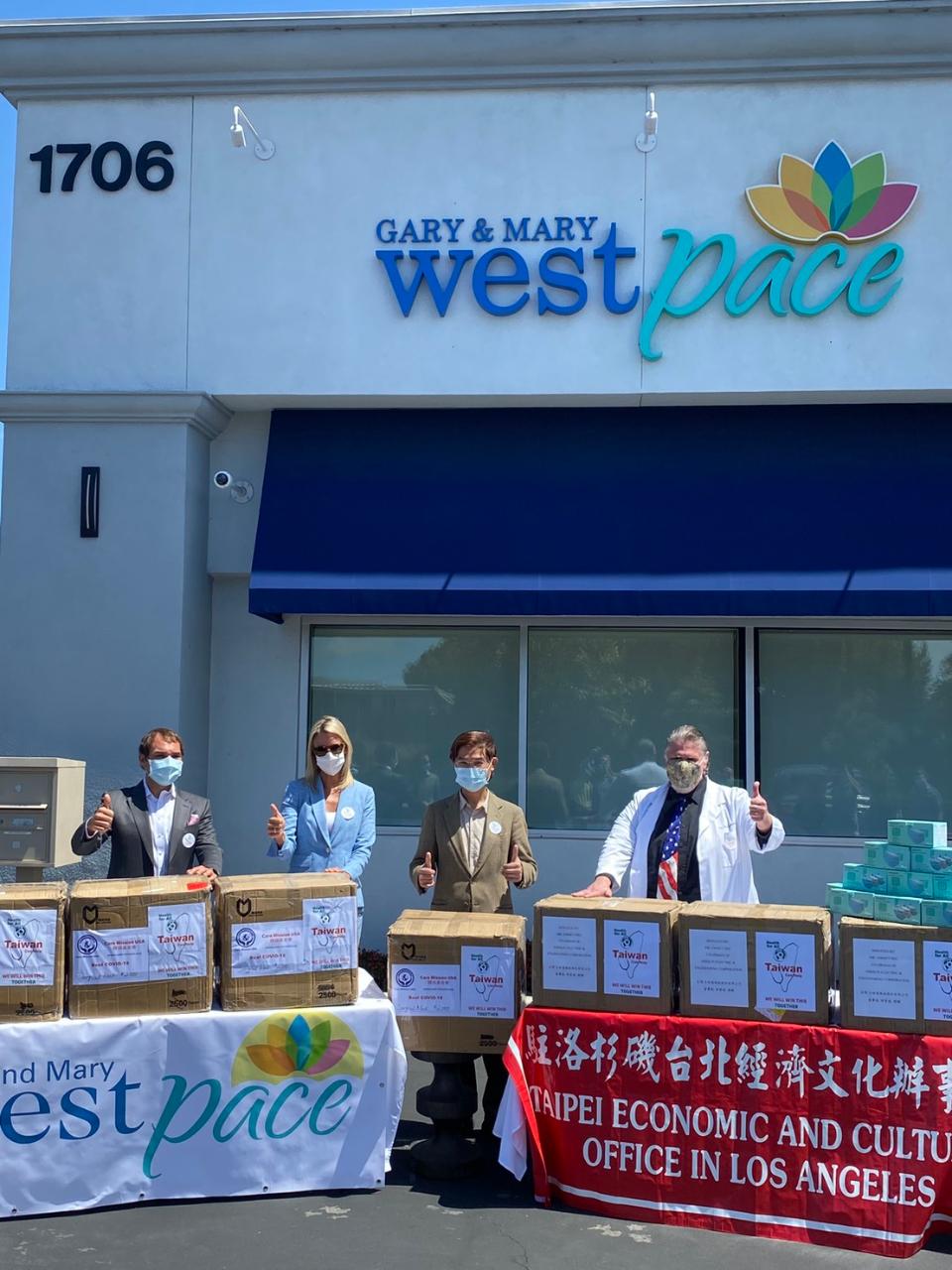 On May 14, 2020, the Taipei Economic and Cultural Office in Los Angeles (TECO-LA), together with Care Mission USA and the Taiwan Shihlin Electric and Engineering Corporation, hosted a ceremony where 20,000 surgical masks were donated to the Gary and Mary West PACE in San Diego, California.