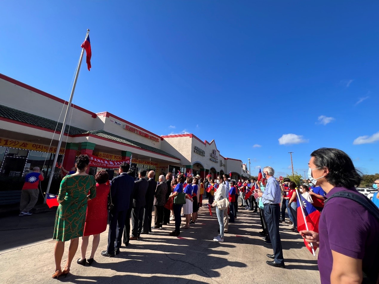 在司儀徐美嬋的代領下,一同高唱兩國國歌,升兩國國旗,大家並揮舞著國旗,高呼中華民國萬歲及臺灣加油。主辦單位代表大奧蘭多台灣商會會長林哲光、僑務委員王成章,以及本處紀處長等人致詞,感謝佛州各地僑胞不辭辛苦趕來參加元旦升旗典禮,表達對中華民國的支持,並敬祝各位新年快樂。