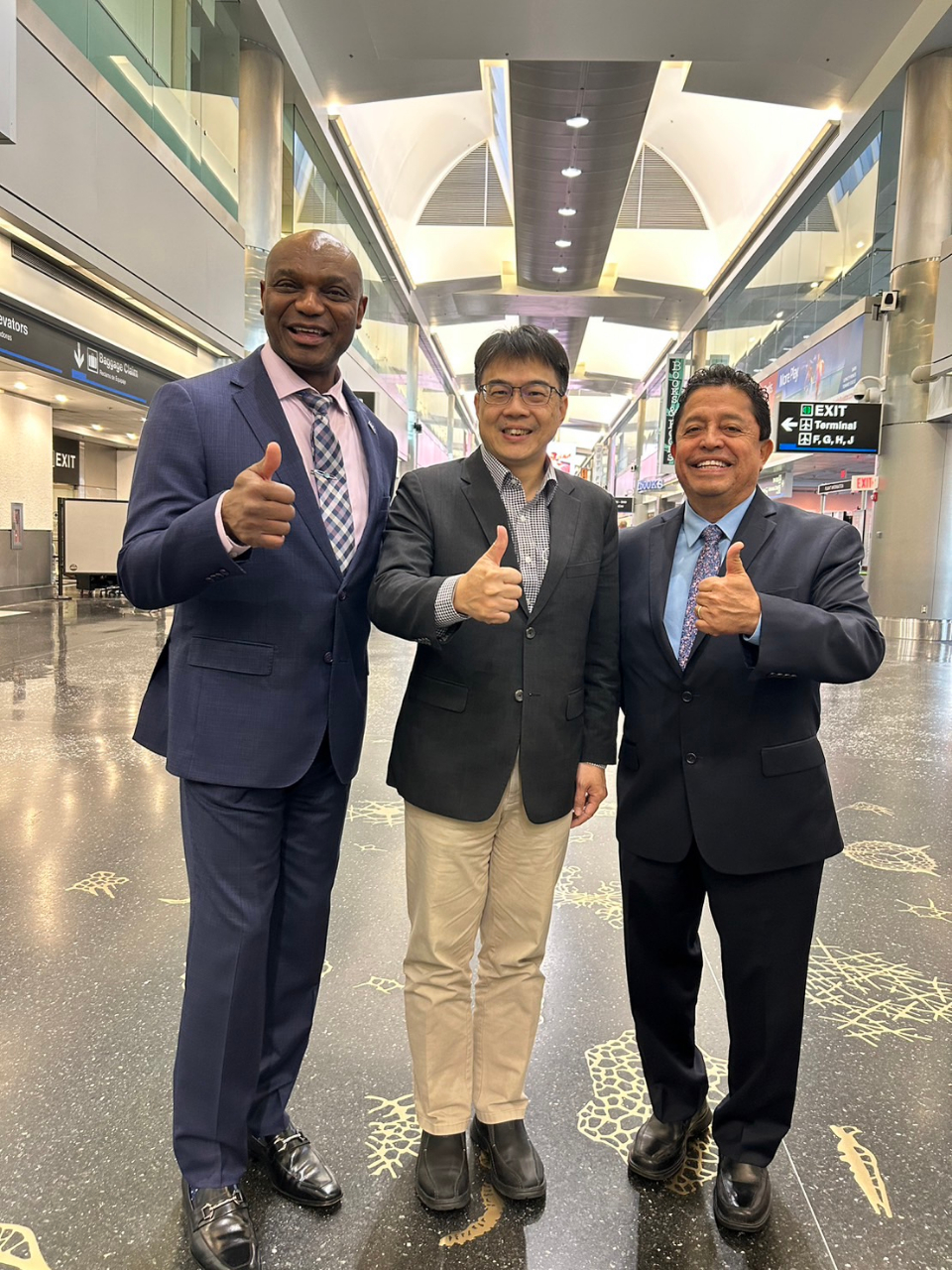 本處周啟宇處長1月31日傍晚抵達邁阿密,邁阿密國際機場禮賓及國際事務處處長Desmond Alufohai偕同該處禮賓官William Herrera到場接機並向周處長抵任履新表達歡迎之意。