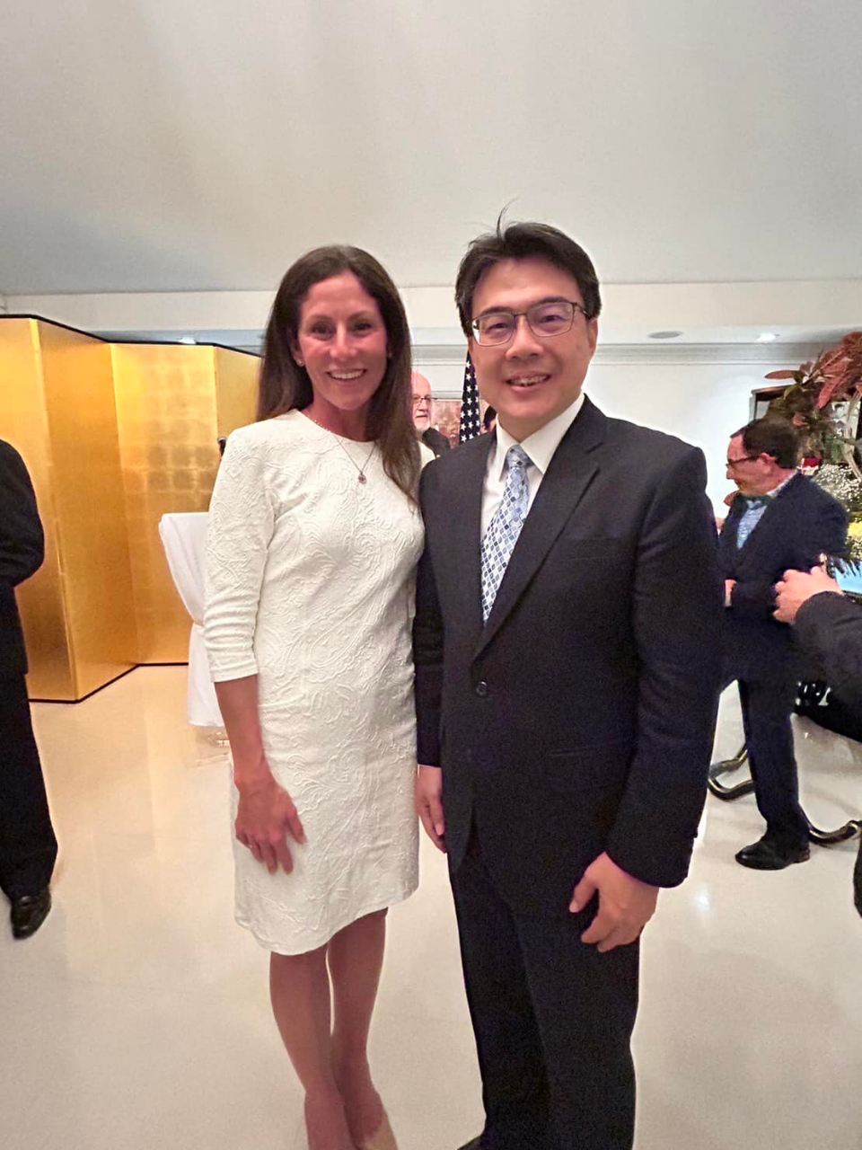 周處長日前在日本駐邁阿密總領事館舉辦的日本天皇誕辰慶祝酒會上與佛州商務廳長(Florida Secretary of Commerce)Laura DiBella就深化台佛經貿交流進行交流。
