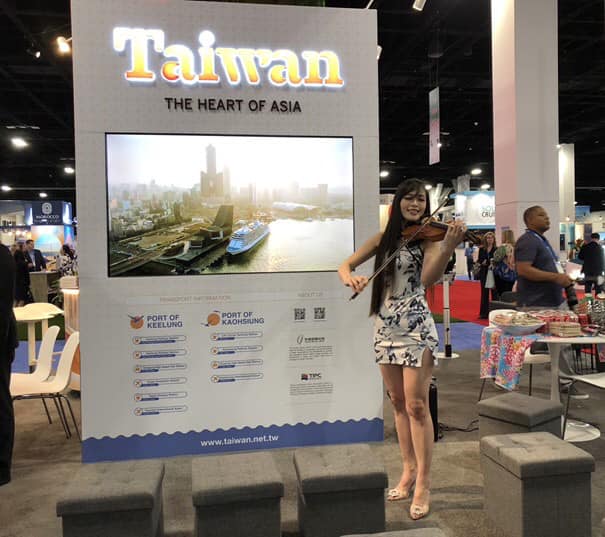 知名台灣音樂家林蘭軒於台灣形象展攤演奏小提琴。