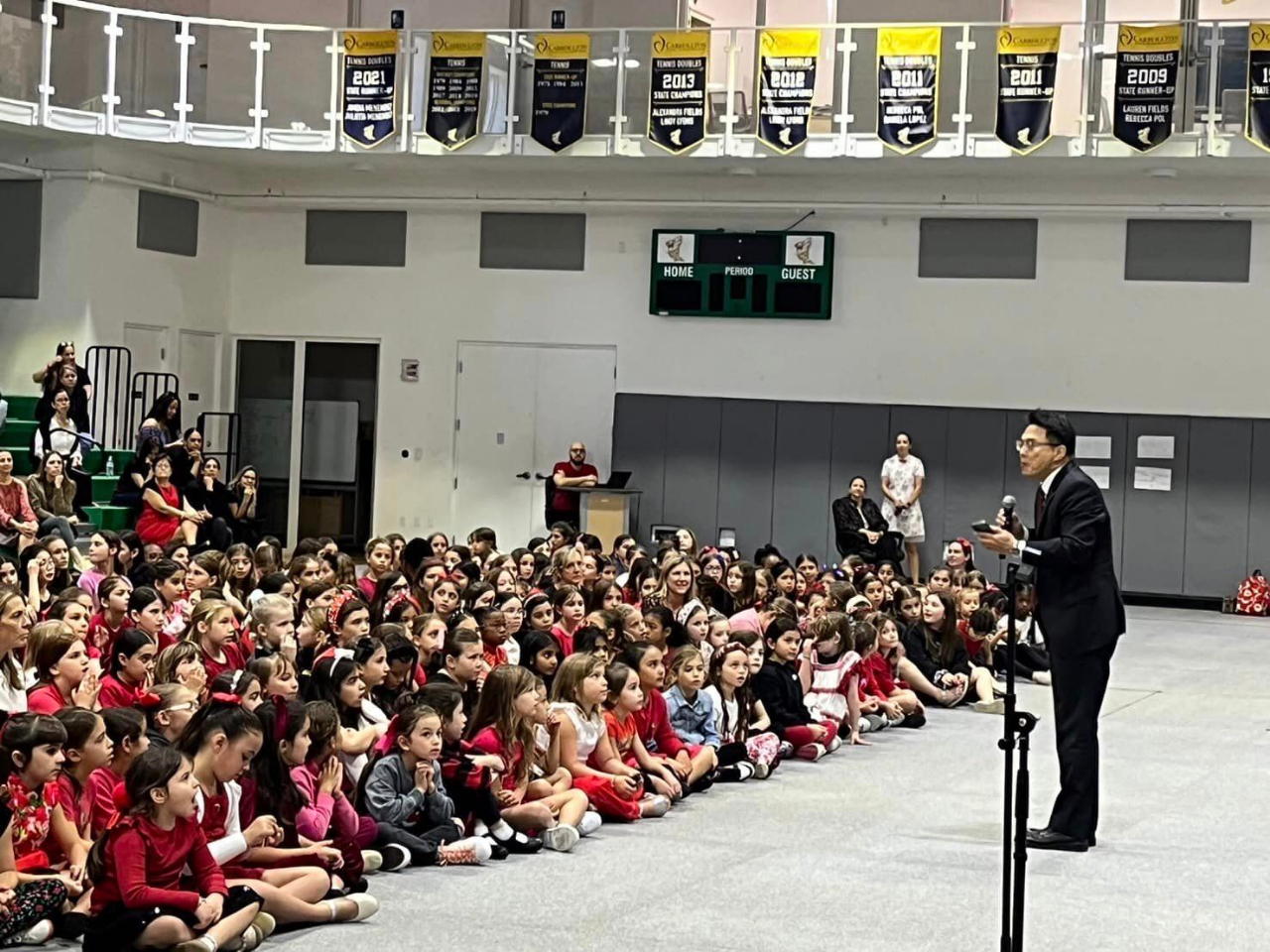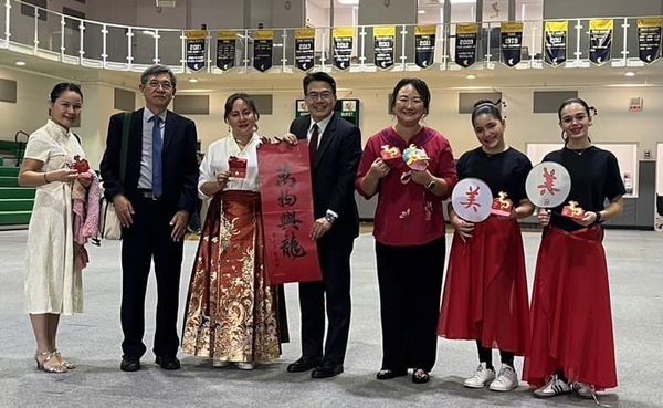 周處長2月16日偕僑務秘書黃士聰出席邁阿密地區最富盛名的天主教聖心女子學校(Carrollton School of the Sacred Heart)舉辦之農曆新年慶祝活動。該校校長Heather Gillingham及副校長Patrick Coyle、小學分部校長Brittney Hernandez及副校長Christie Diaz、台裔華語教師張曉蕾及學生與家長逾400人齊聚一堂歡慶龍年春節。