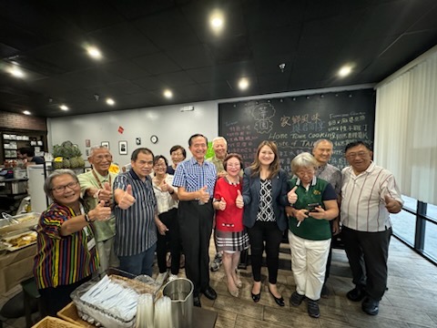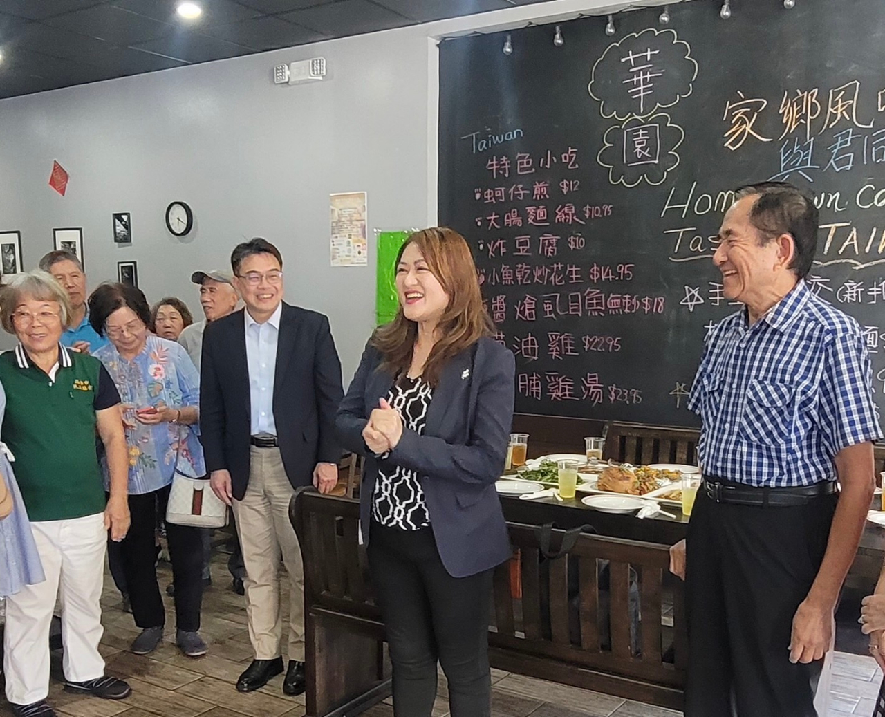 高雄市觀光局長高閔琳於6月30日到訪中佛州奧蘭多,同樣都來自高雄的周處長與中佛州鄉親,包含僑務諮詢委員王成章、僑務顧問高健智及僑務促進委員李三富3位僑領及大奧蘭多臺灣同鄉會會員特地選擇當地著名的台菜餐廳「華園小館」設宴喜迎這位從家鄉遠道而來的嬌客。