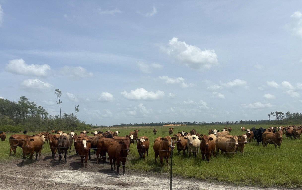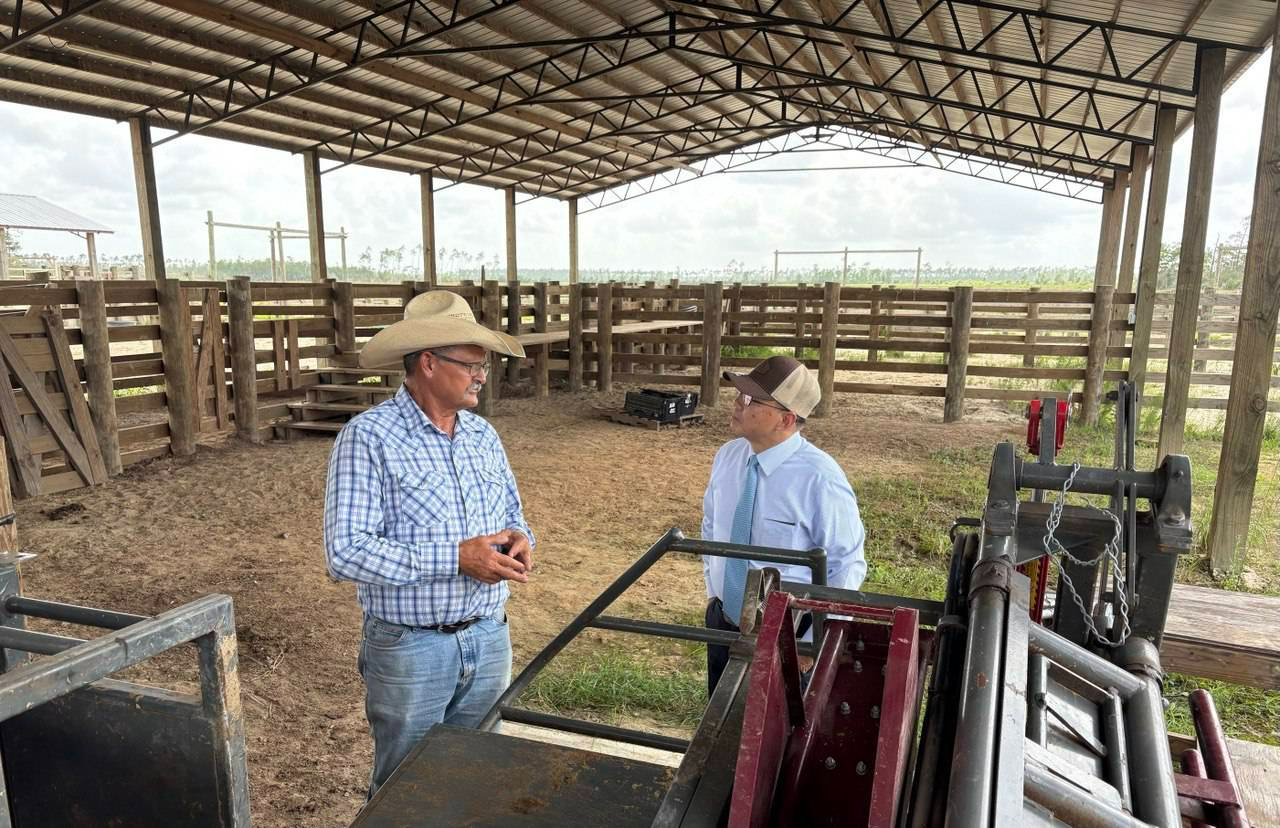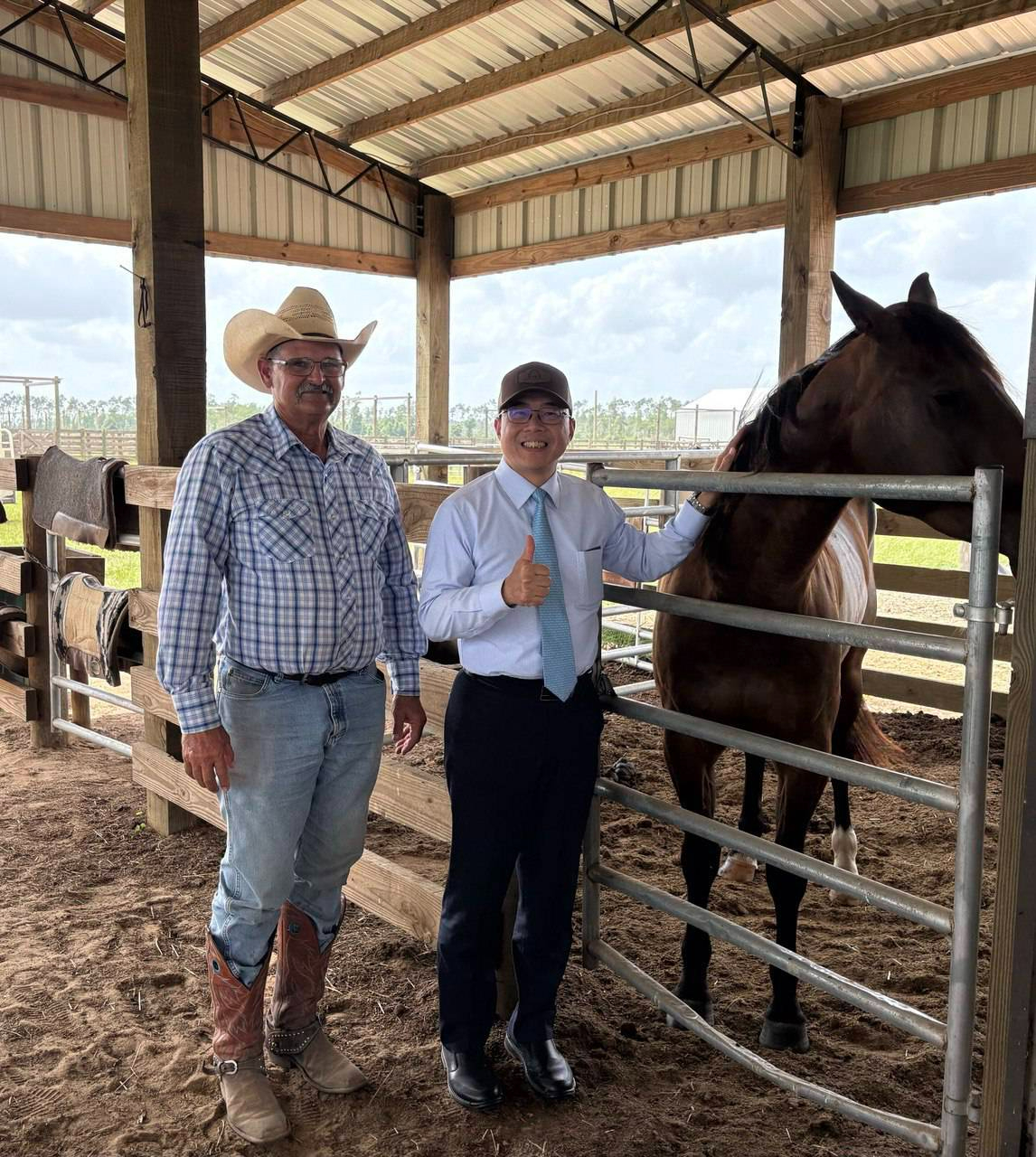 周處長日前偕游組長訪問位在佛州西北部巴拿馬市(City of Panama)近郊的畜牧場”Deseret Cattle & Timber”,瞭解佛州畜牧業的發展情形。 “Deseret Cattle & Timber”除了養牛還經營伐木與作物種植,也出租土地供設置太陽能發電板,是多角化經營的牧場。