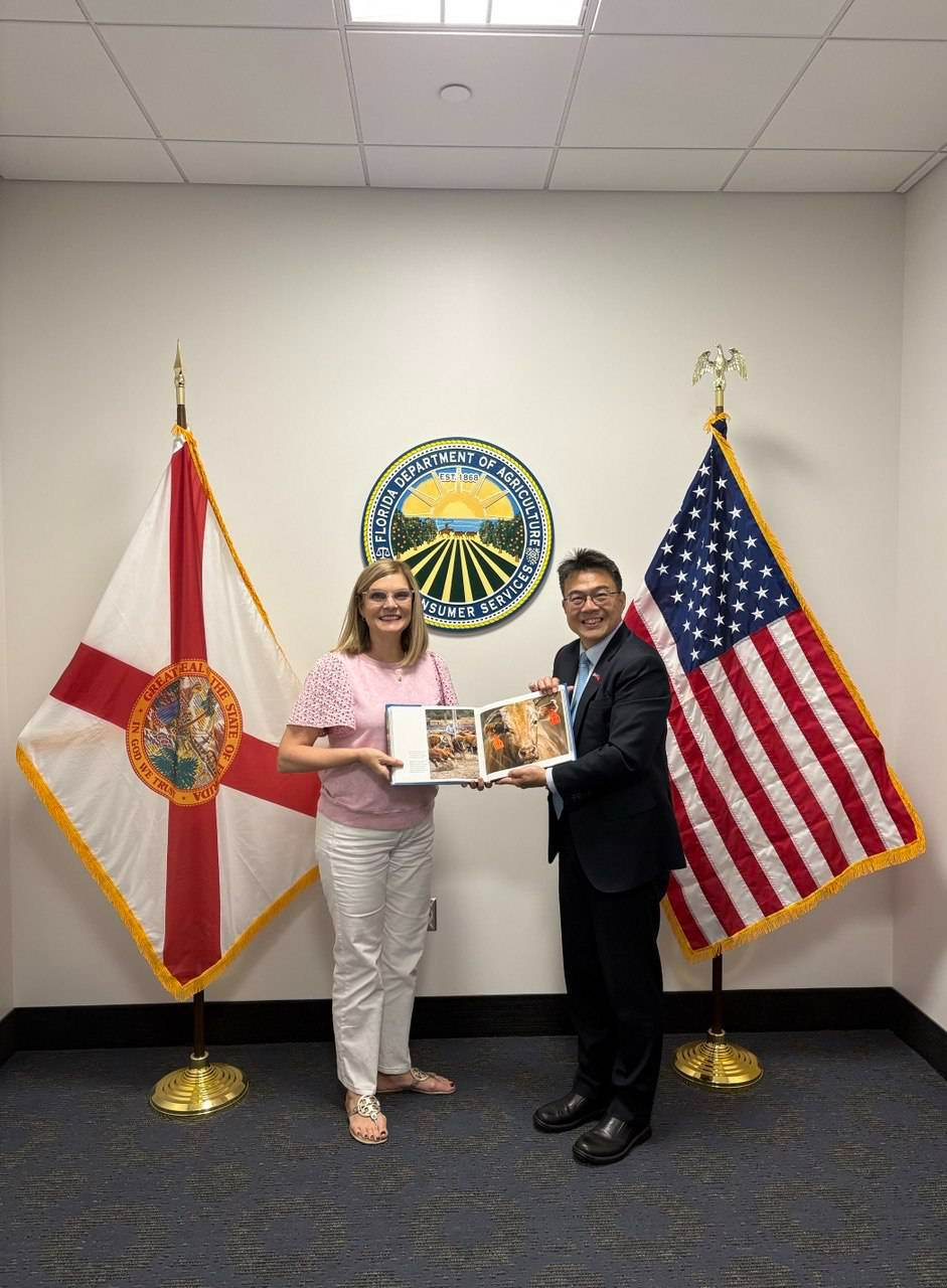 周處長日前偕游組長前往州府塔城(Tallahassee),拜會佛州農業廳副廳長Kathy Mears,就推動台佛雙方農業合作交換意見。 農業是佛州的重要產業,為佛州經濟創造1,965.9億美元產值及18.2%的就業機會(2022年)。佛州的晚崙西亞橙、甘蔗、西瓜、甜玉米與花卉產值在全美均名列前茅。