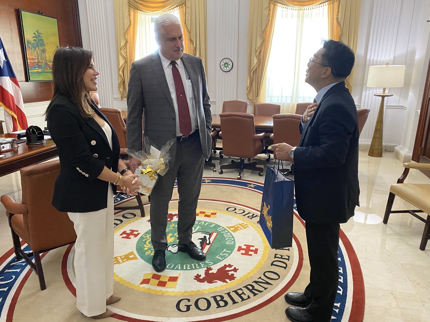 周處長於8月21日下午拜會波多黎各參議會議長 Thomas Rivera Schatz,Rivera參議長肯定台灣與波邦之間的友好合作關係,並表示雖尚未親自訪問過台灣,但對台灣在民主制度、經濟成就、科技發展以及人民的友善熱情並不陌生。 周處長歡迎 Rivera 參議長未來有機會率團訪問台灣,增進雙方交流,並共同探討雙方關切議題與發掘潛在合作機會,為台波關係注入新動力。