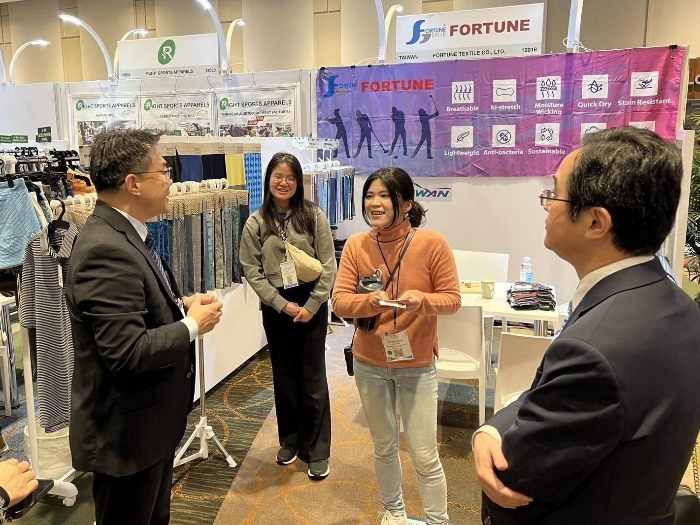 駐處周啟宇處長於1月22日偕蔡邦文副組長、駐亞特蘭大經濟組長唐永興及「大奧蘭多台灣商會」會長李麗玲夫婦,在紡拓會副處長呂書綺等人陪同下拜訪參展廠商,除轉達我政府對業者的關心與鼓勵外,也就佛州運動市場、美國關稅及潛在商機等議題與我商交換意見。