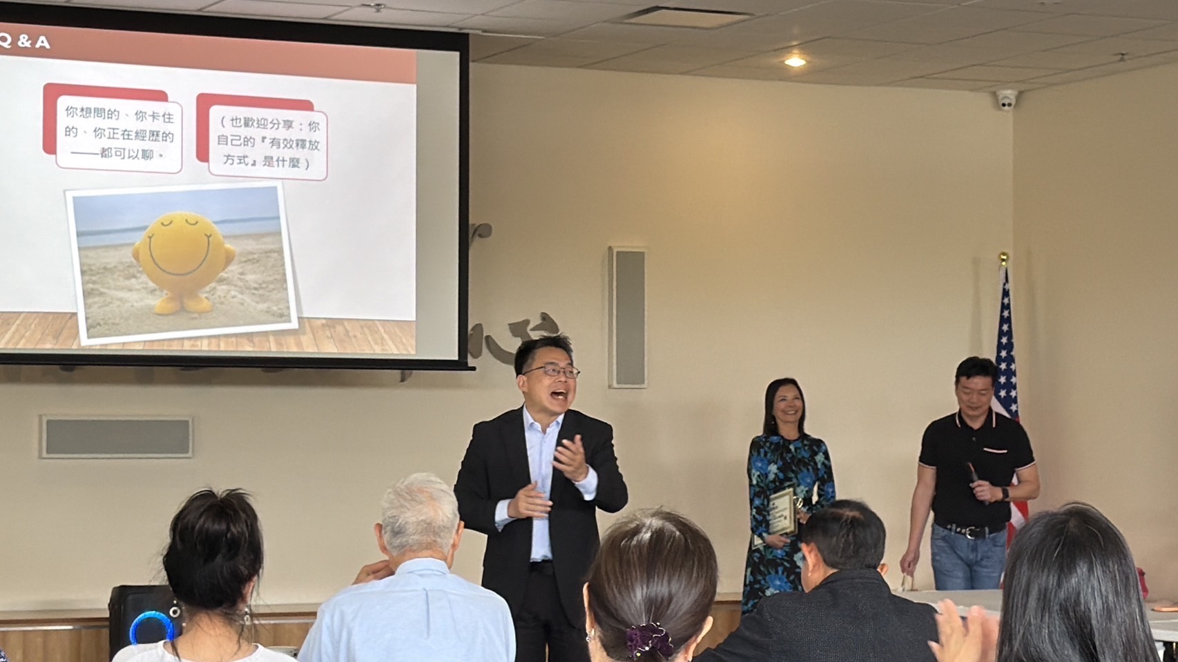 周處長3/14上午應邀參加大奧蘭多臺灣商會舉辦的「當代生活壓力與釋放座談」。 周處長特別謝謝李麗玲會長的費心安排 ,也期待李彥翰教授的講座讓我們更加認識壓力,並找到身心調適的最好方法,讓壓力轉化成生活中的正能量。 祝福台灣鄉親們「過得自在、活出精彩」!