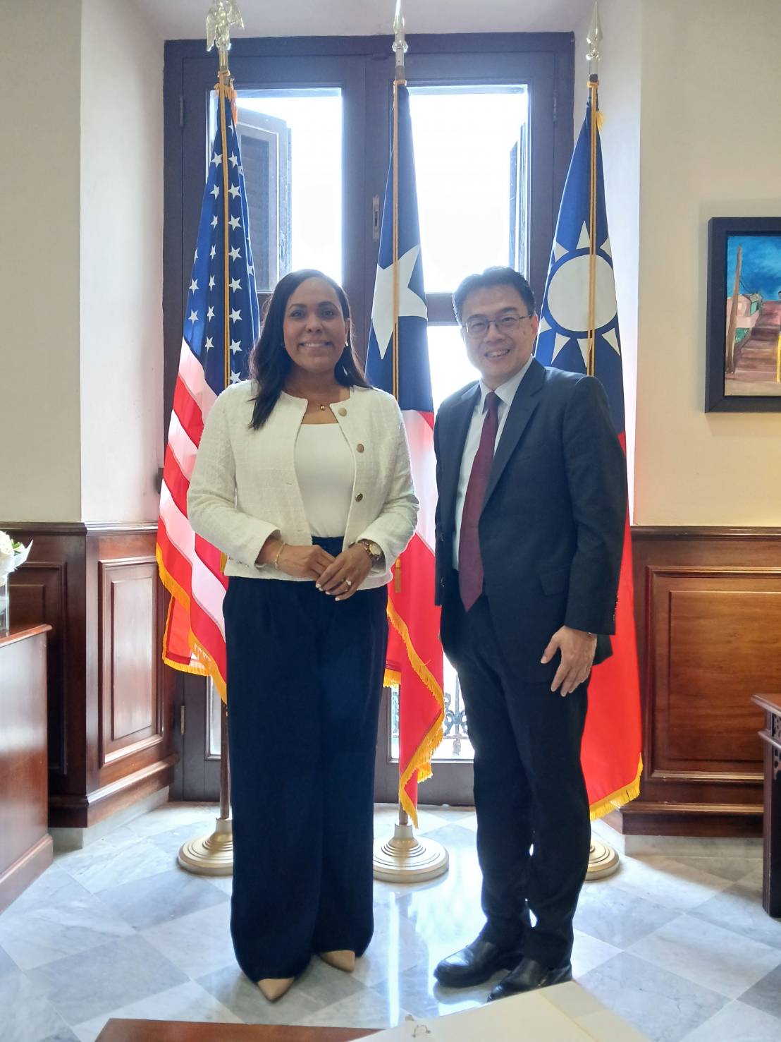 周處長日前前往波多黎各拜會邦務卿 Rosachely Rivera,就台波經貿交流議題進行討論。 邦務卿辦公室特別懸掛我國國旗??以示歡迎,表達雙方友好與尊重。 周處長與Rivera邦務卿對未來持續推動台波長期夥伴關係充滿信心,期望創造互利共贏的合作成果。