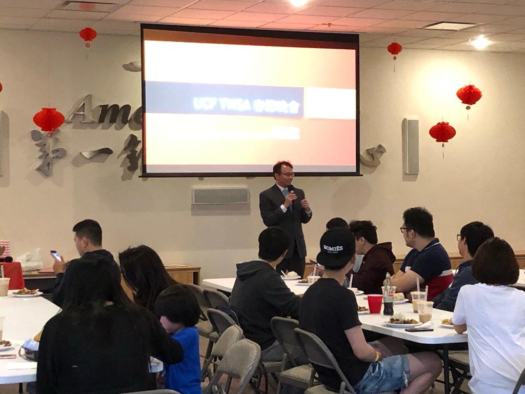 中佛州大學(UCF)台灣同學會於本(2)月9日下午在第一銀行奧蘭多分行舉辦2019年農曆春節聚餐與摸彩晚會,來自中佛州地區數十位台灣留學生同聚一堂,歡慶金豬年的到來。本處處長錢冠州偕副領事朱軒玟暨第一銀行經理高健智也應邀出席,與同學們同歡。
