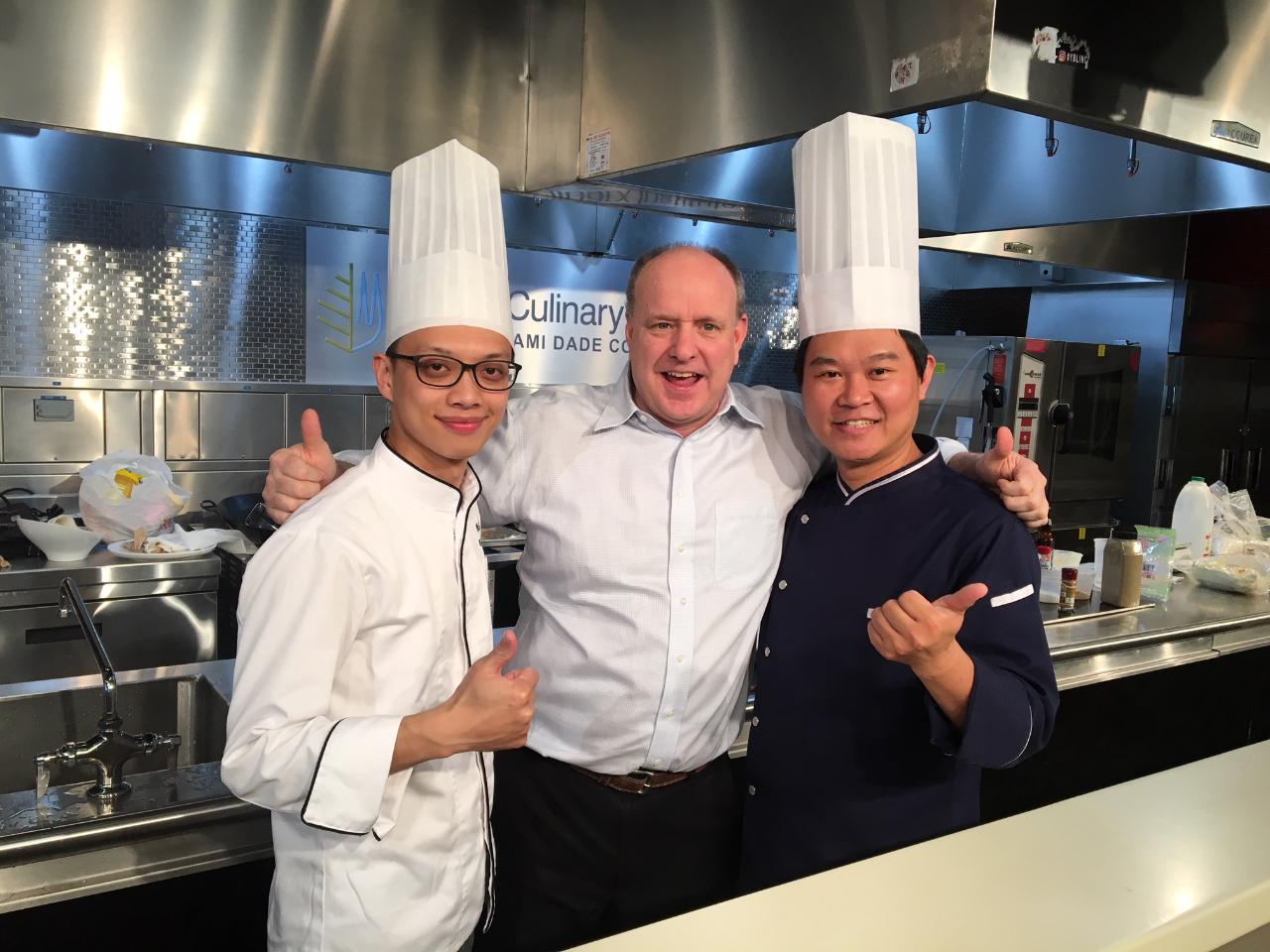 a 溫國智主廚與助手陳瑞昌老師與邁阿密廚藝學校(Miami Culinary Institute)校務主任Jim Carroll合影