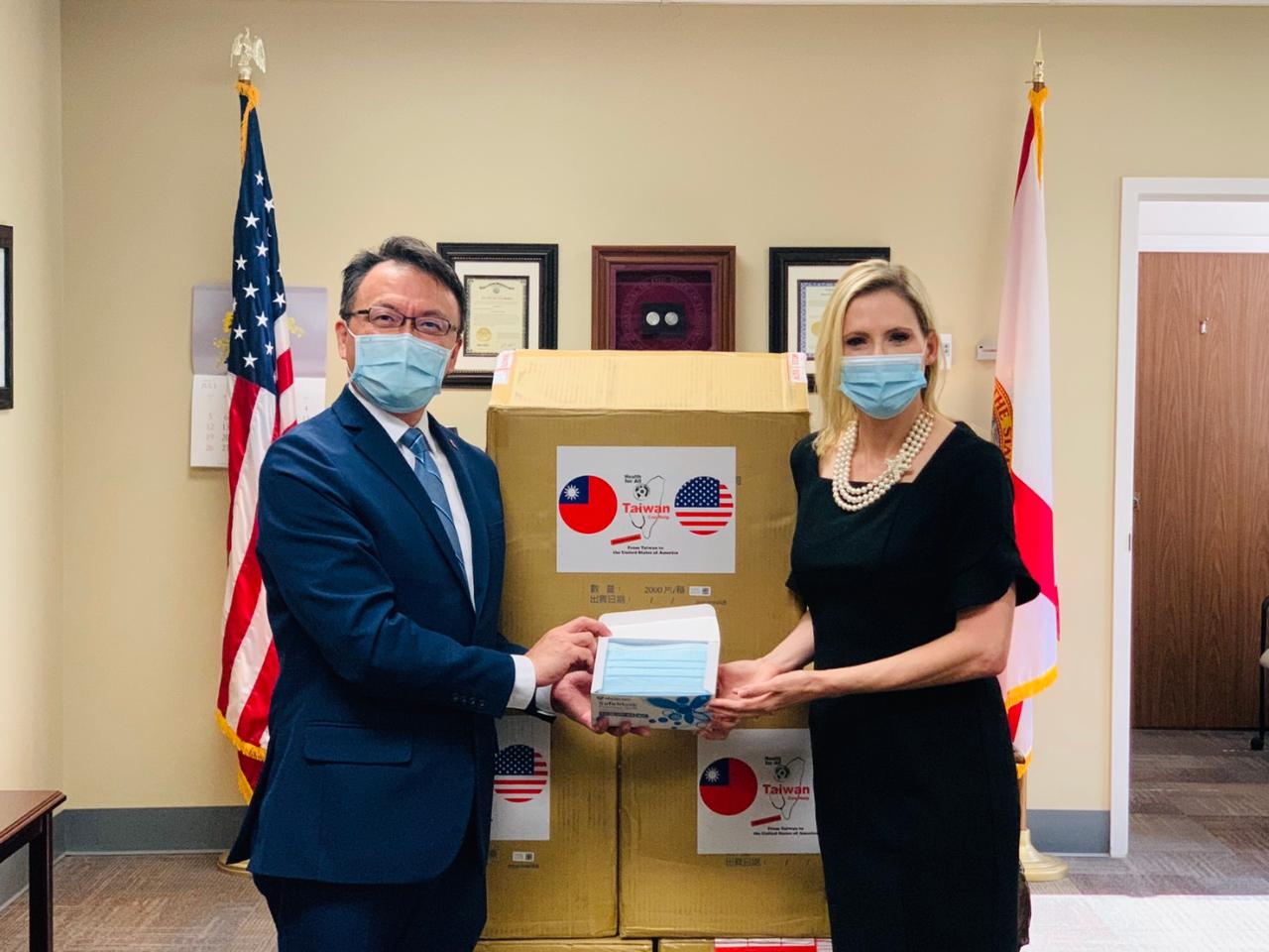 台灣雪中送炭再捐贈22萬片口罩給佛羅里達州州政府協助對抗新冠病毒肺炎(COVID-19) - 駐邁阿密台北經濟文化辦事處 Taipei Economic and Cultural Office in Miami ::: 跳到主要內容區塊
